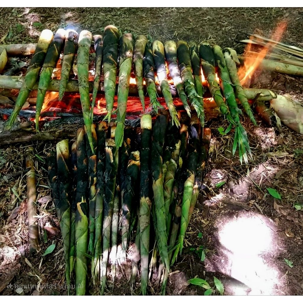 👉 หน่อไม้รวกเผา อัดถุง เป็นภูมิปัญญาชาวบ้าน สามารถเก็บได้นานเป็นปีโดนไม่ต้องแช่แข็ง
