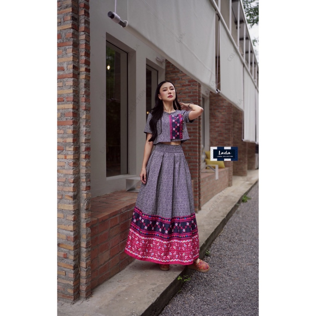 เป็นผ้าฝ้ายพิมพ์ลาย ตกแต่งด้วยลวดลายผ้าโพลี่เอสเตอร์