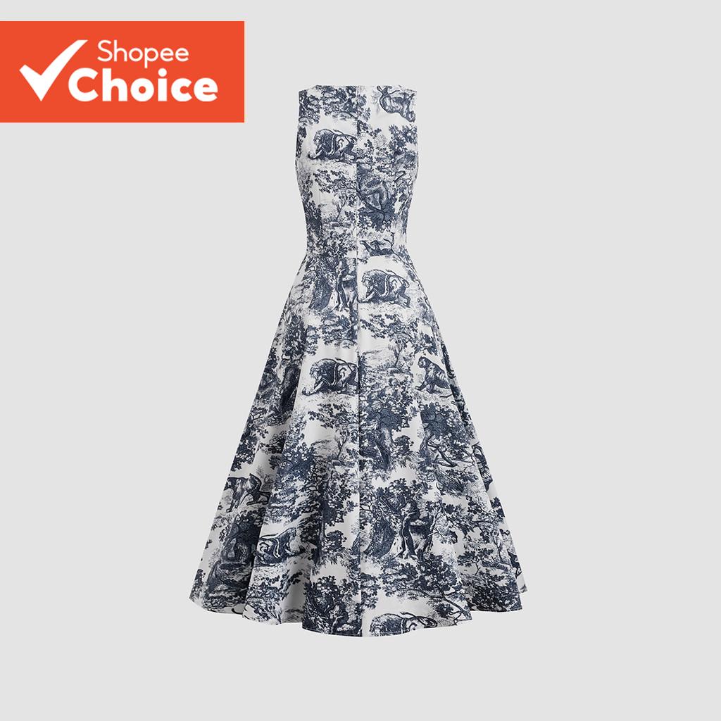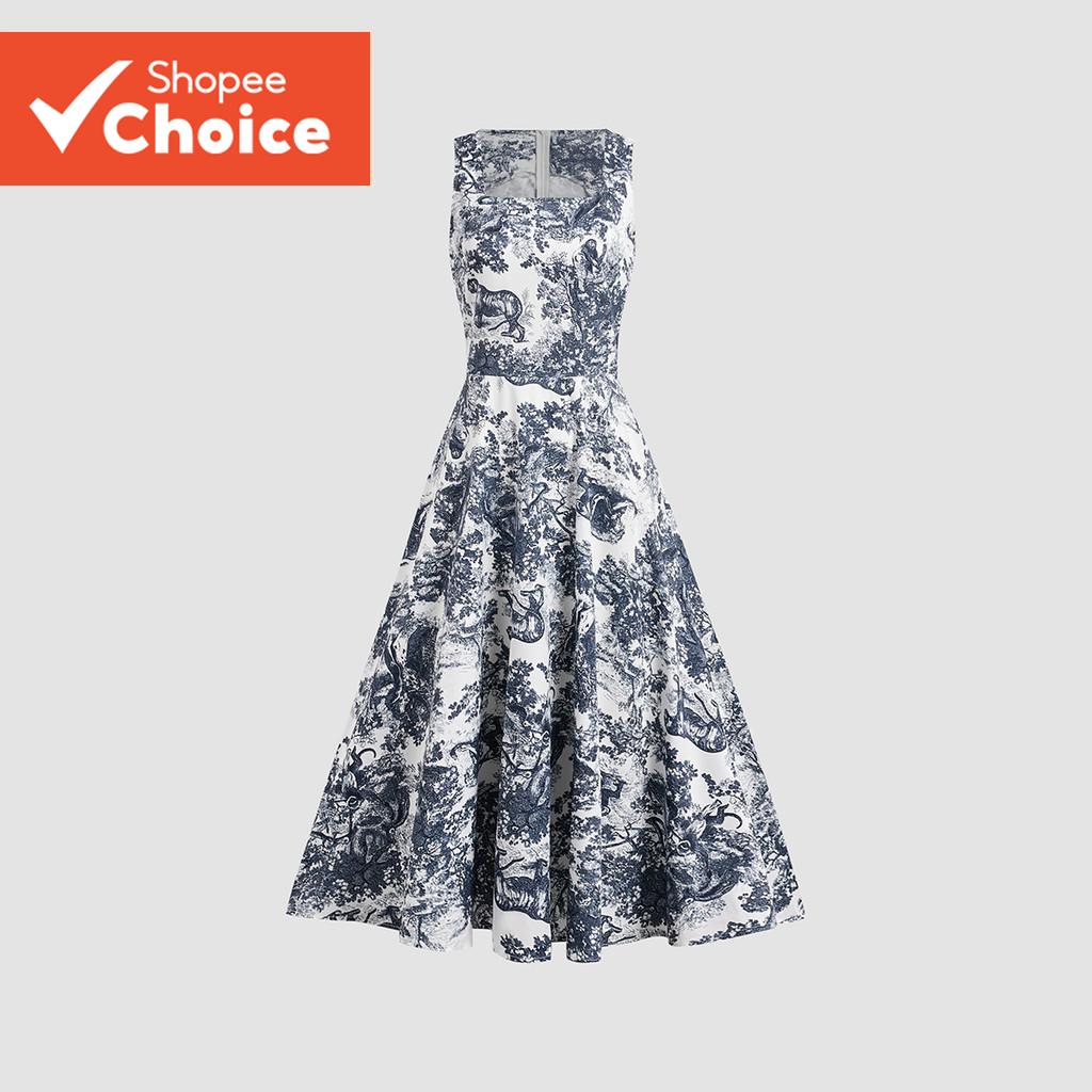 B137-JUL25-A-1-ชุดเดรสสายเดี่ยวลายดอกไม้แขนกุด-DRB137PBD284