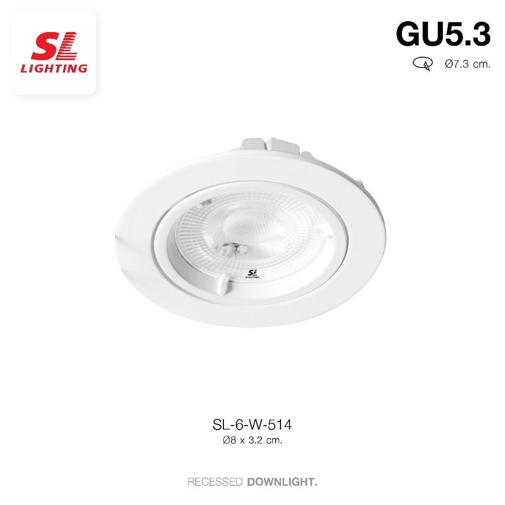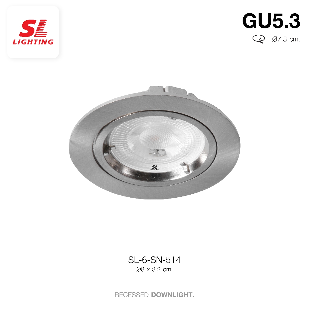 🔔ข้อมูลสินค้า🔔 รหัสสินค้า : SL-6-514 วัสดุ : อลูมิเนียม ขั้วหลอด : MR16 GU5.3 ใช้หลอดไฟจำนวน : 1 หลอด ขนาด : Ø8 x H3.2 cm. ระยะตัดฝ้า : Ø7.3 cm.