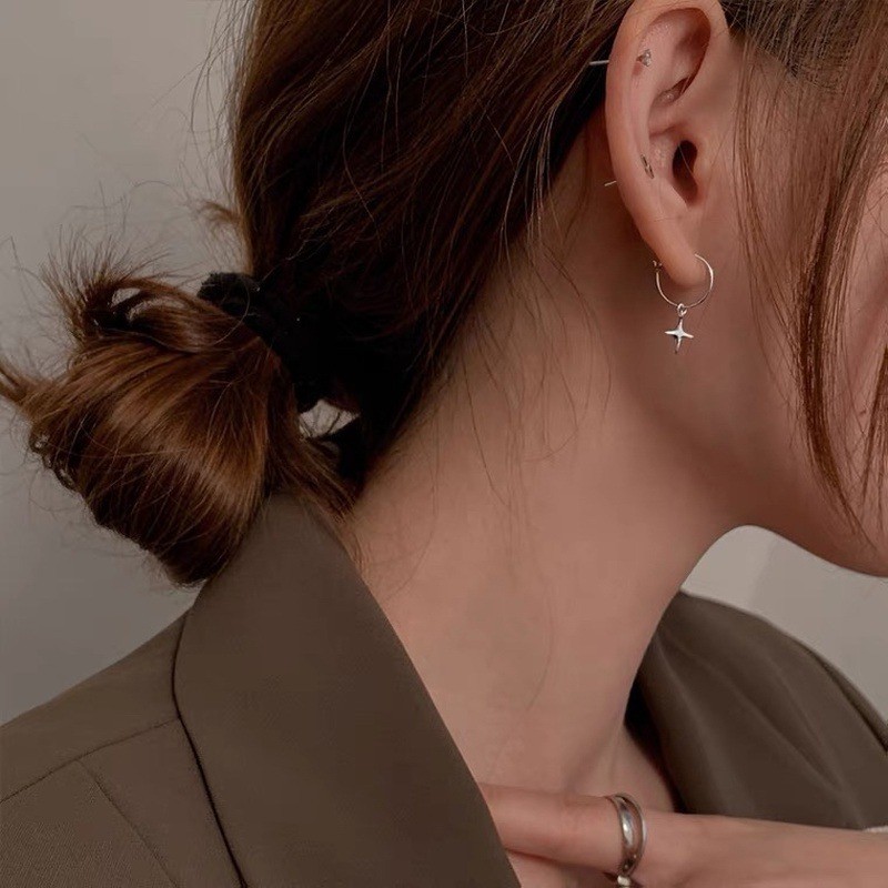 ต่างหูซิลเวอร์สตาร์ฮูป: ต่างหูห้อยดาวเงิน 1 คู่ต่างหูดาวเงินต่างหูดาวเงินที่เข้ากับเกือบทุกชุดที่คุณมีเพื่อตอบ
