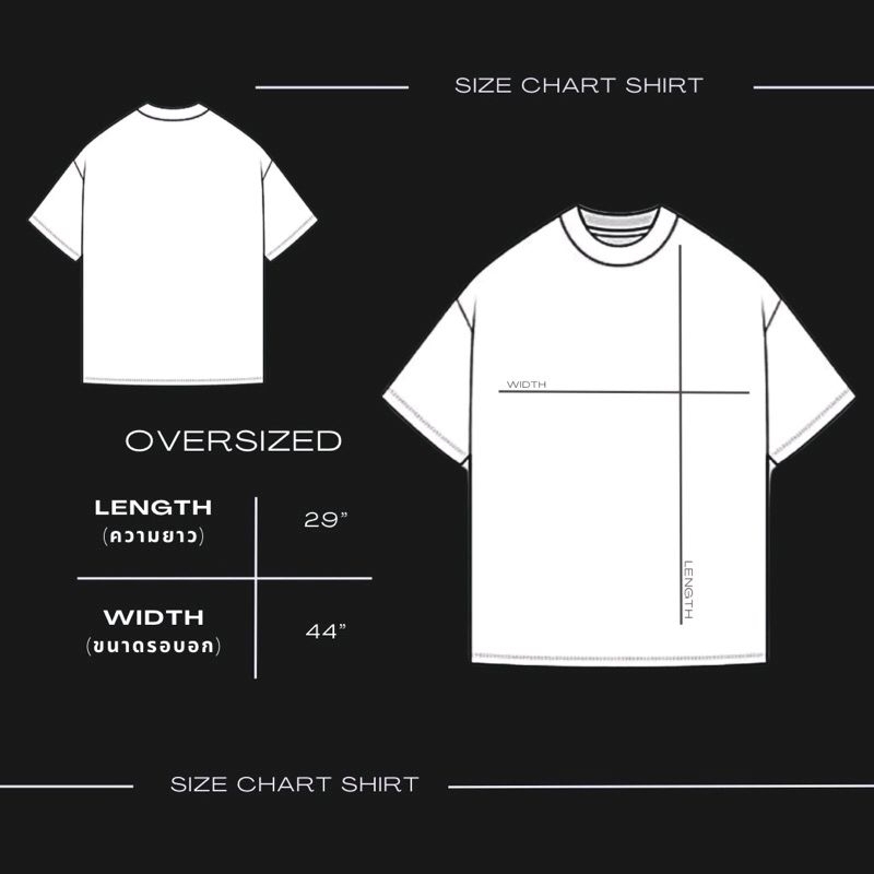รอบอก 44″ ยาว 29″ แขนยาว 9″