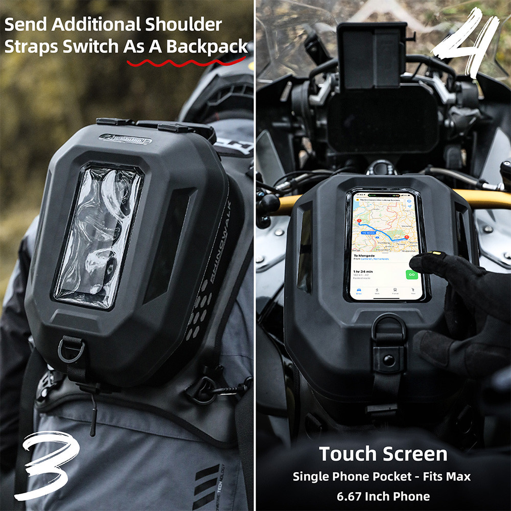 Rhinowalk Touch Screen Motorcycle Hard Shell Waterproof Tank Bag (5.6L)