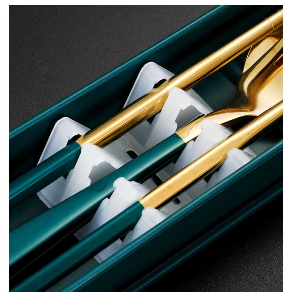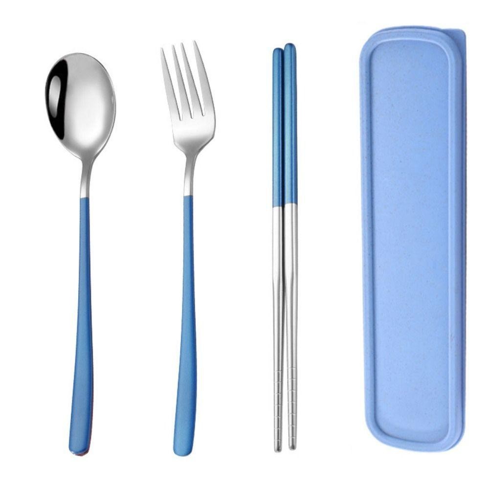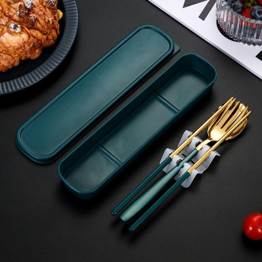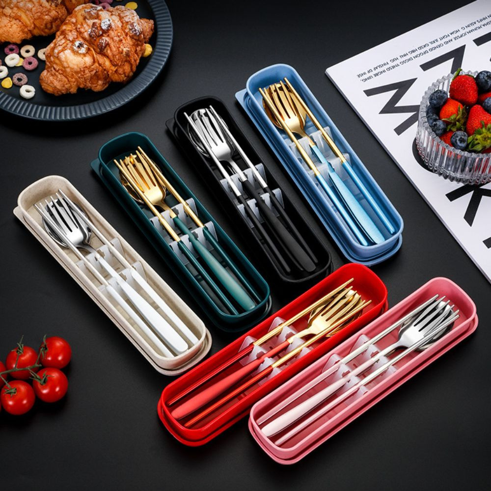 วูเป่ย ชุดอาหาร,พร้อมที่เก็บชุดช้อนส้อมสไตล์เกาหลี,แบบพกพา304สแตนเลสอาหารเย็นบ้านโรงเรียนห้องครัว