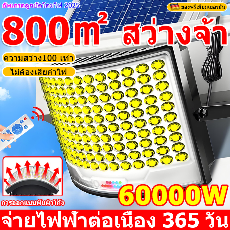 【จัดส่งใน 24 ชั่วโมง】ไฟโซล่าเซล โคมไฟ โคมไฟระย้า ไฟ ไฟโซล่าเซลล์ โคมไฟถนนโซลล่าเซลล์ ไฟ LED โคมไฟถนน 60000W IPX7 กันน้ำแ