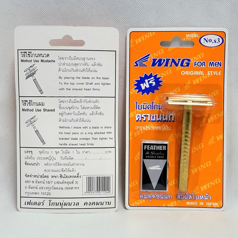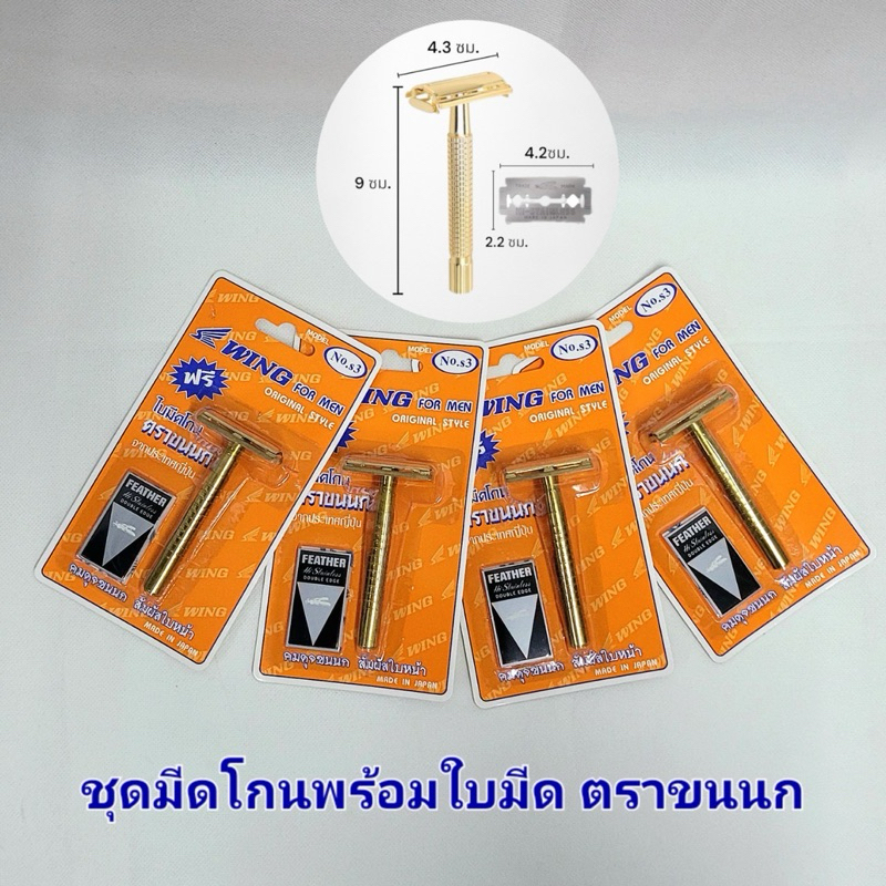 ⚡️แท้ 100%⚡️ มีดโกนด้ามทอง ตราขนนก WING แถมใบมีดโกนแท้ จากประเทศญี่ปุ่น มีดโกนปลงผมนาค บวชพระ จับถนัดมือ ทนทานไม่เป็นสนิม