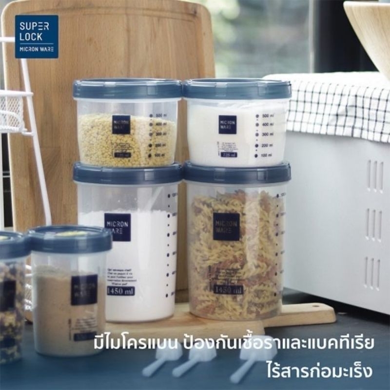 กระปุกใส่อาหาร ขวดโหลฝาเกลียว โหลมีสเกลบอกปริมาตร มีช้อนตักและไม่มีช้อนในบางเบอร์ Super Lock
