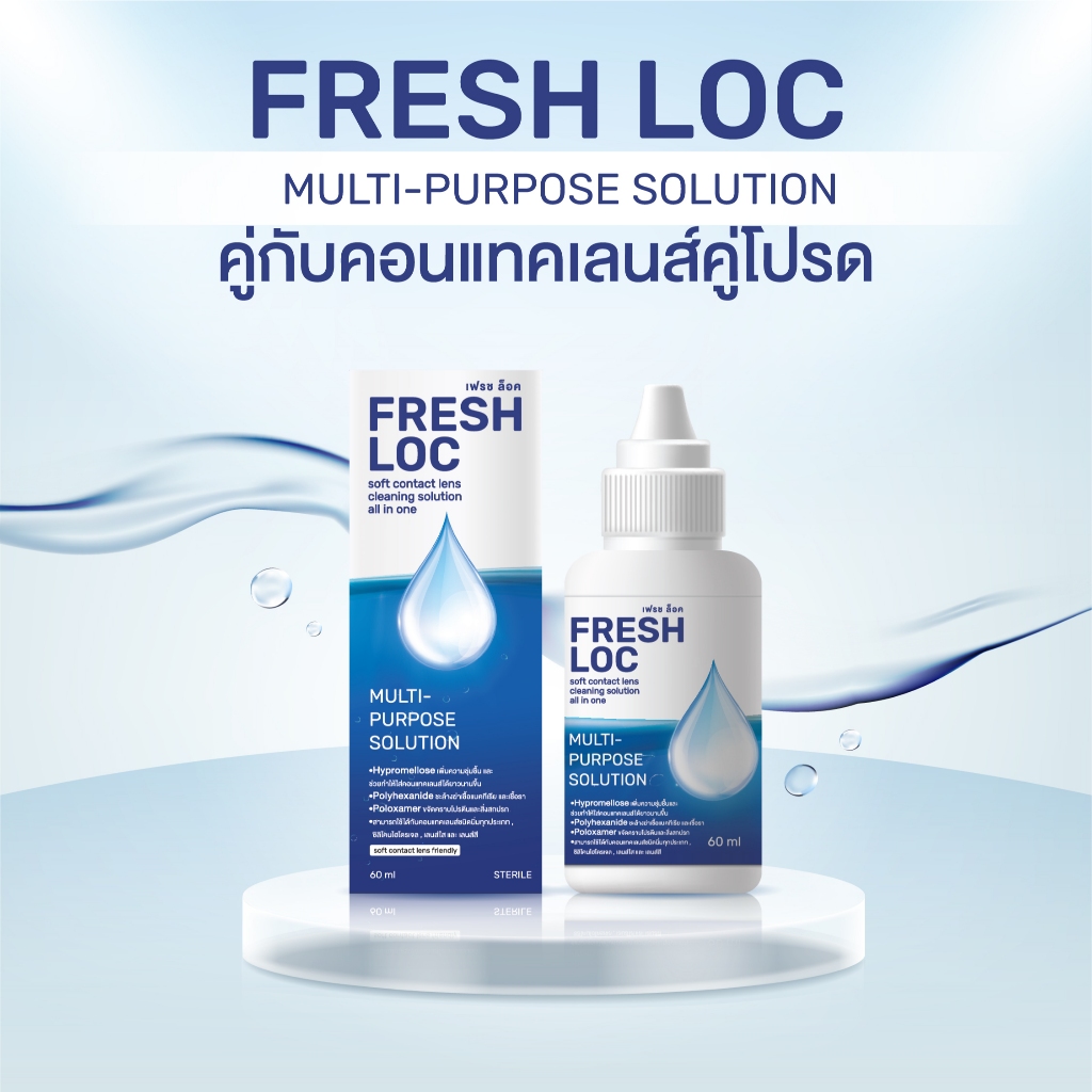 FRESH LOC มัลติเพอรืโพส โซลูชั่น น้ำยาทำความสะอาดและแช่คอนแทคเลนส์สำหรับคอนแทคเลนส์ทุกชนิด.
