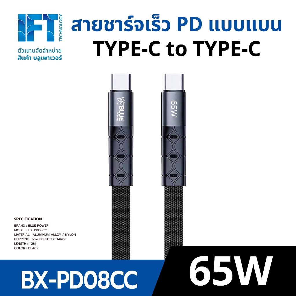สายชาร์จด่วน รองรับการจ่ายไฟแบบ PD สูงสุด 65w (แบบ C to C)
