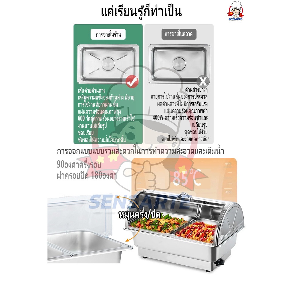 Lamp วัสดุที่ปลอดภัยสําหรับอาหาร 304สแตนเลส โรงแรมหรือบุฟเฟ่ต์ใช้ได้ แบบไฟฟ้า ถาดสแตนเลส ถาดใส่อาหาร ส่งสินค้างจากรุงเทพ