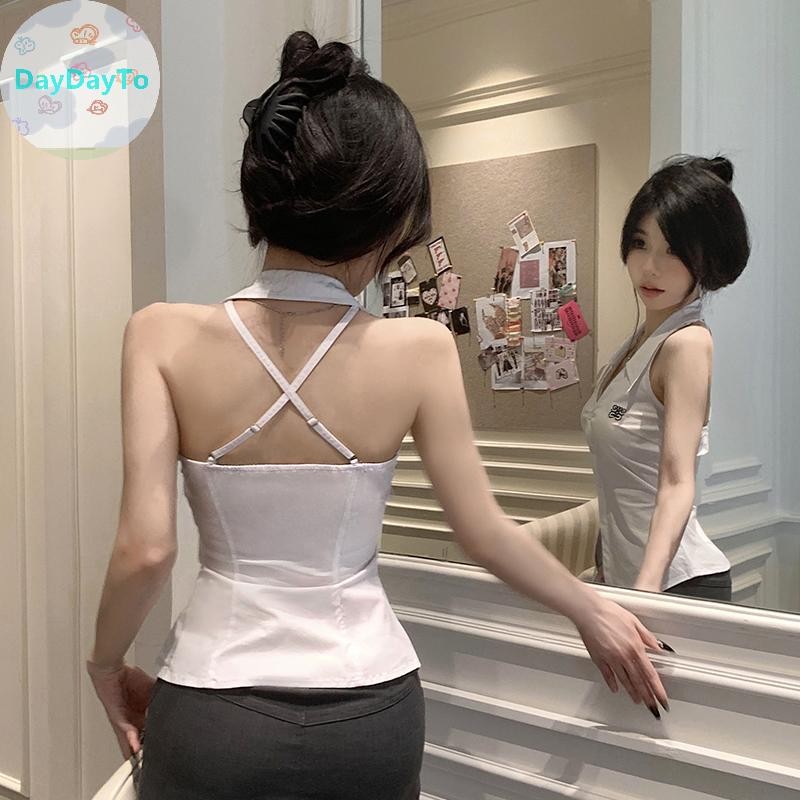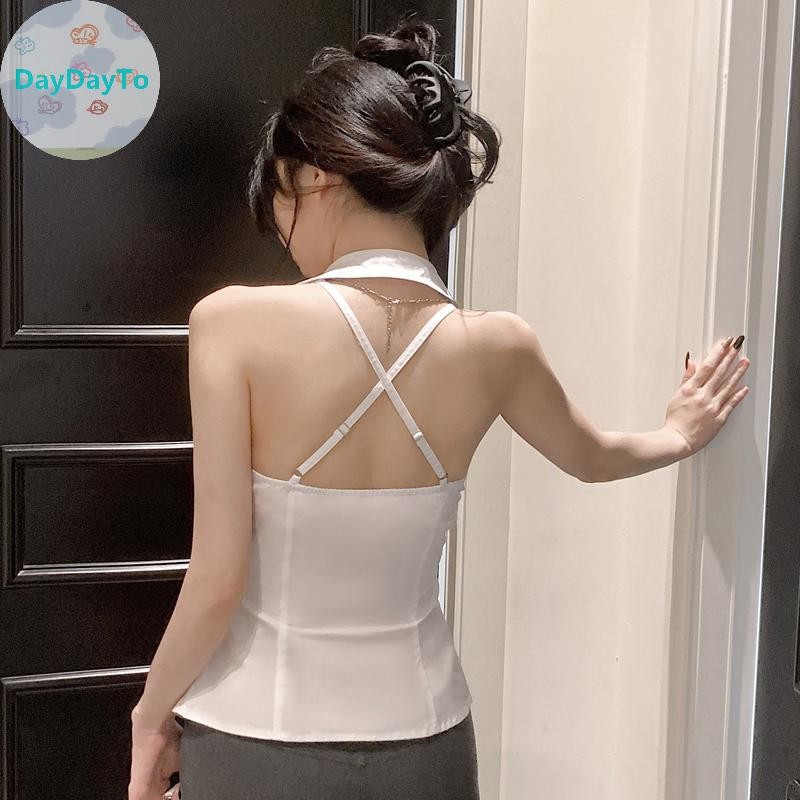 DayDayTo ฤดูร้อนผู้หญิง Pure Desire เซ็กซี่กระดุมแถวเดียวแขนกุด Backless Slim เสื้อเสื้อกั๊ก TH