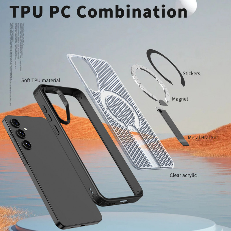 รายละเอียดสินค้าวัสดุ: TPU + อะคริลิคคุณสมบัติ: ขาตั้งมุมขวา, การดูดแม่เหล็ก, การชาร์จแบบไร้สาย, การกระจายความร้อน, ระบายอากาศได้, การป้องกันกล้อง, รูปแบบการป้องกันการตกกระแทก: รุ่นที่ใช้งานได้ง่าย: สำหรับ Samsung A56