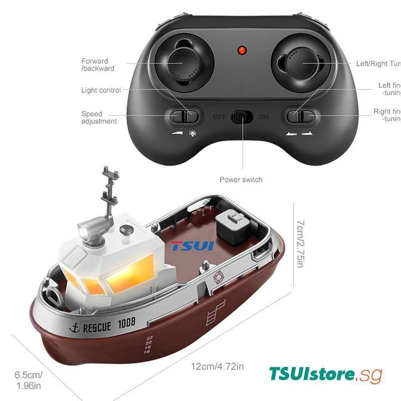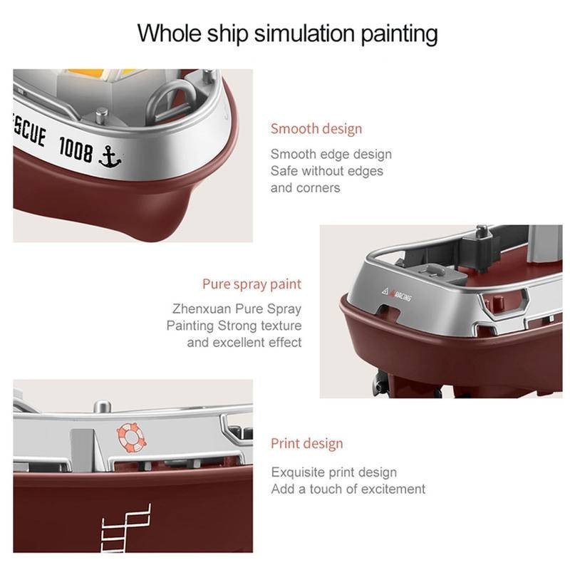 แรงขับเคลื่อนที่ทรงพลัง: เรือลากจูงจำลองนี้มีใบพัดที่แข็งแกร่งซึ่งให้พลังที่เพียงพอสำหรับการแล่นเรือที่ราบรื่นในขณะที่หางเสือที่ยืดหยุ่นช่วยให้สามารถปรับเปลี่ยนหลักสูตรได้อย่างแม่นยำช่วยเพิ่มประสบการณ์ก