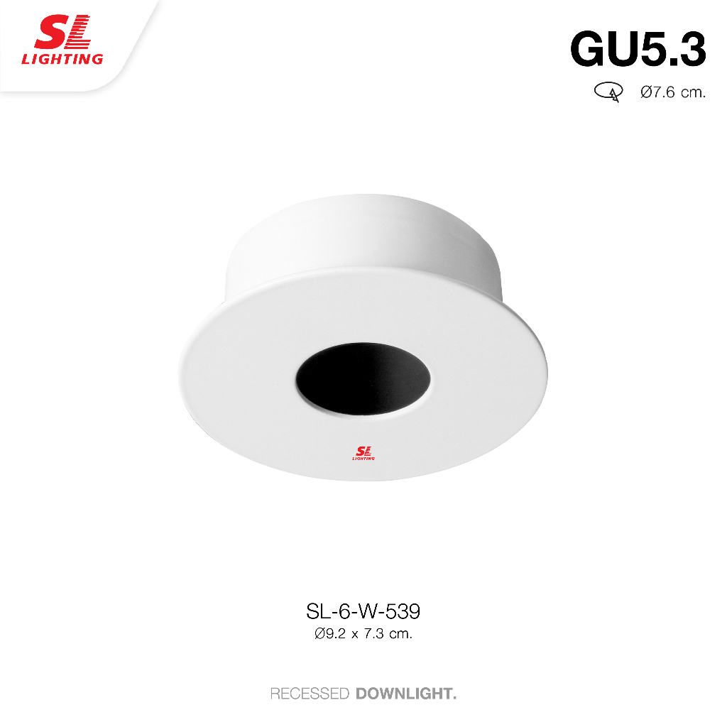 โคมไฟฝังฝ้า ดาวน์ไลท์ ทรงกลมสีขาว ทำจากเหล็ก หน้าตรงปรับองศาไม่ได้