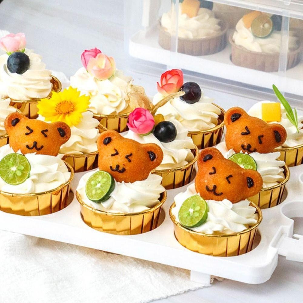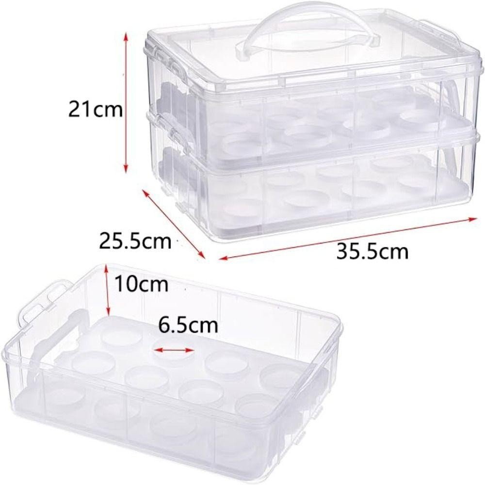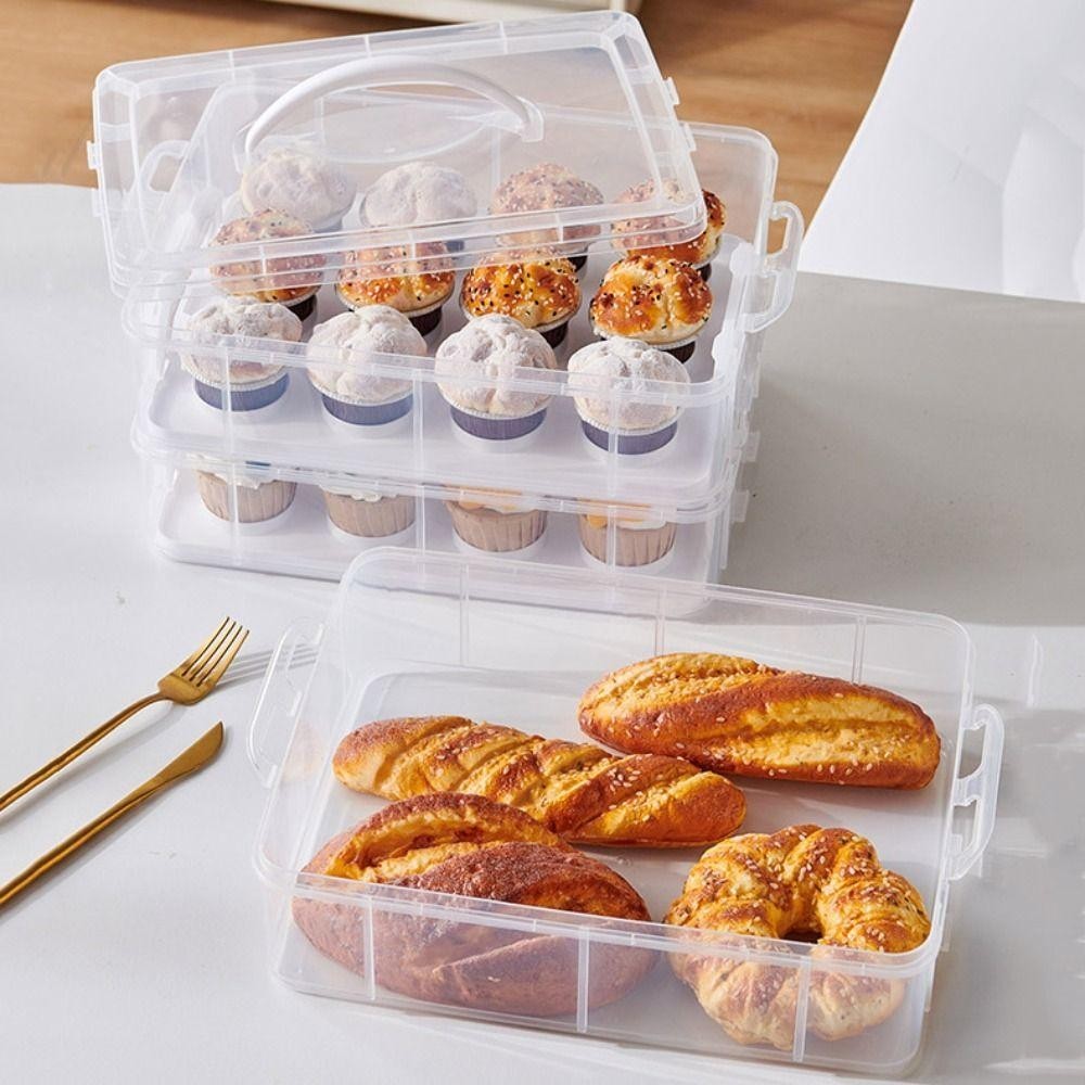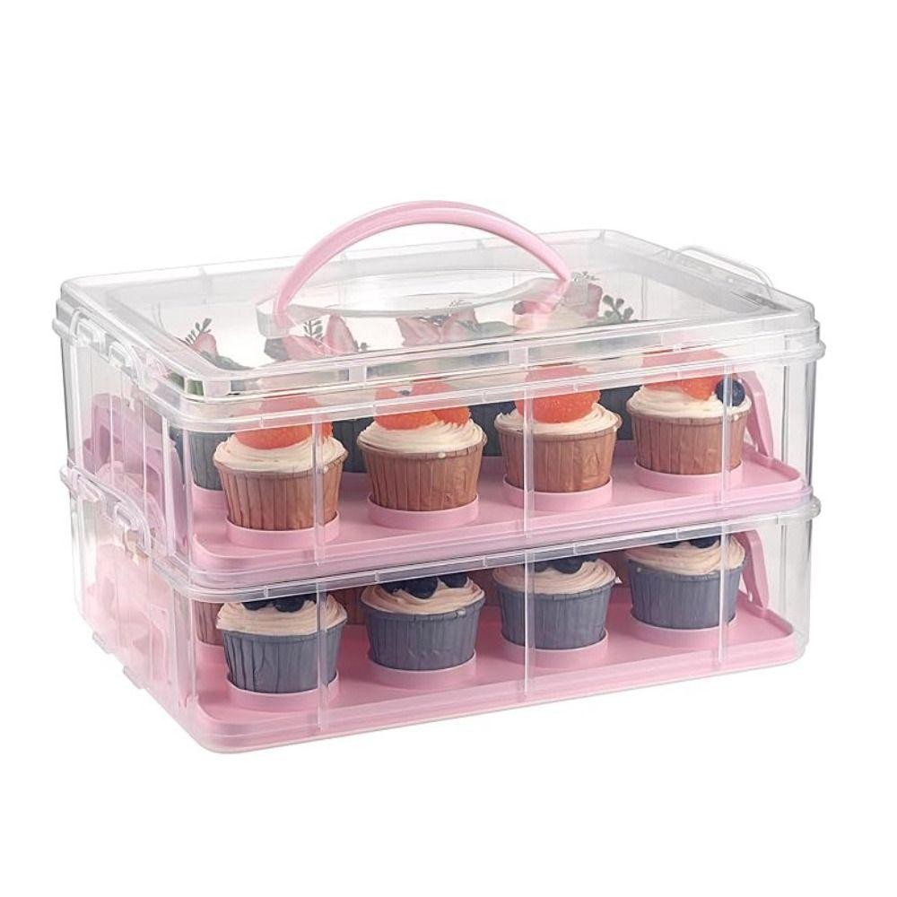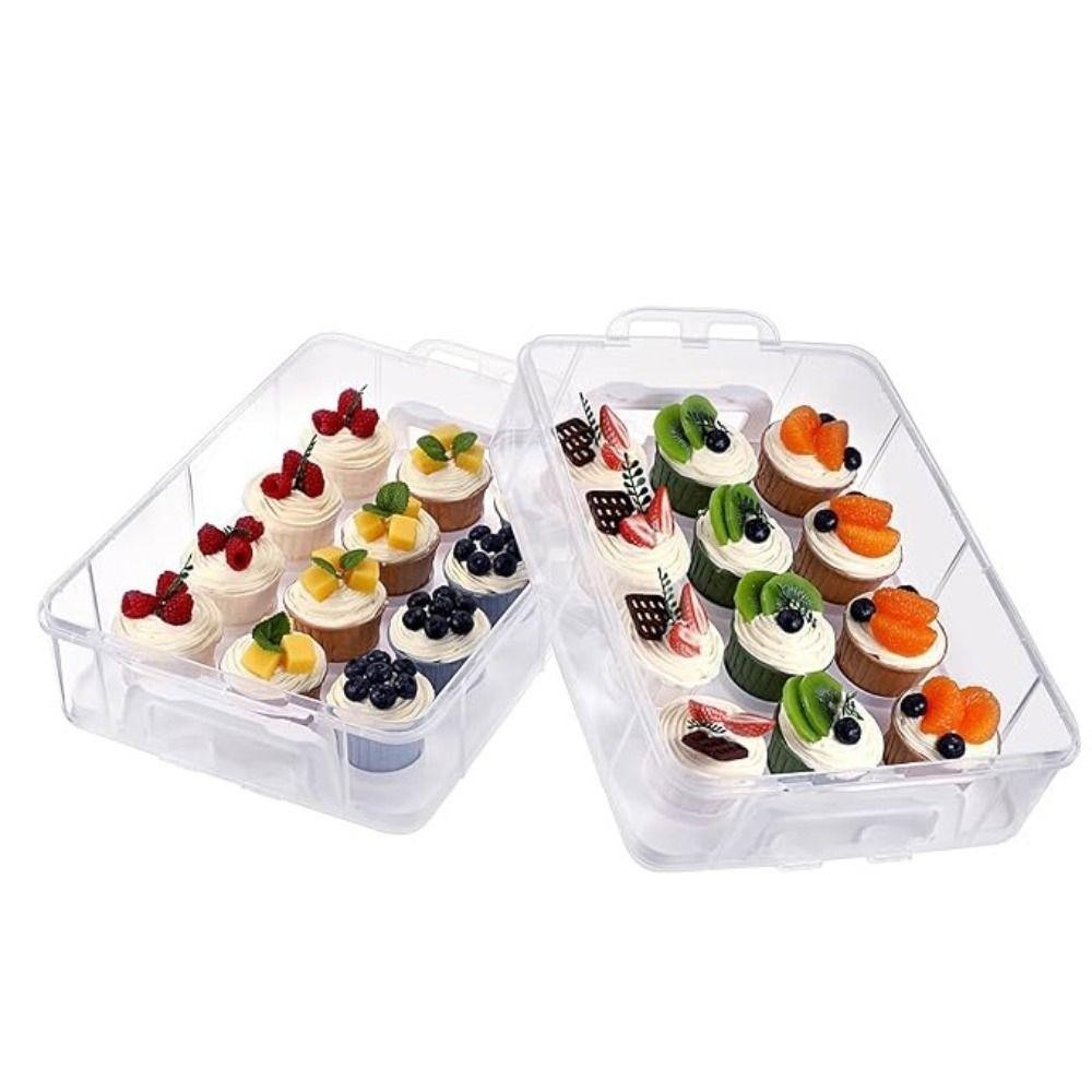 [COD] กล่องเก็บคัพเค้ก, ผู้ให้บริการคัพเค้กสี่เหลี่ยมผืนผ้าโปร่งใส, แบบพกพา 24 กริดพร้อมฝาปิดและที่จับ 2 ชั้น Cupcake คอนเทนเนอร์ Party