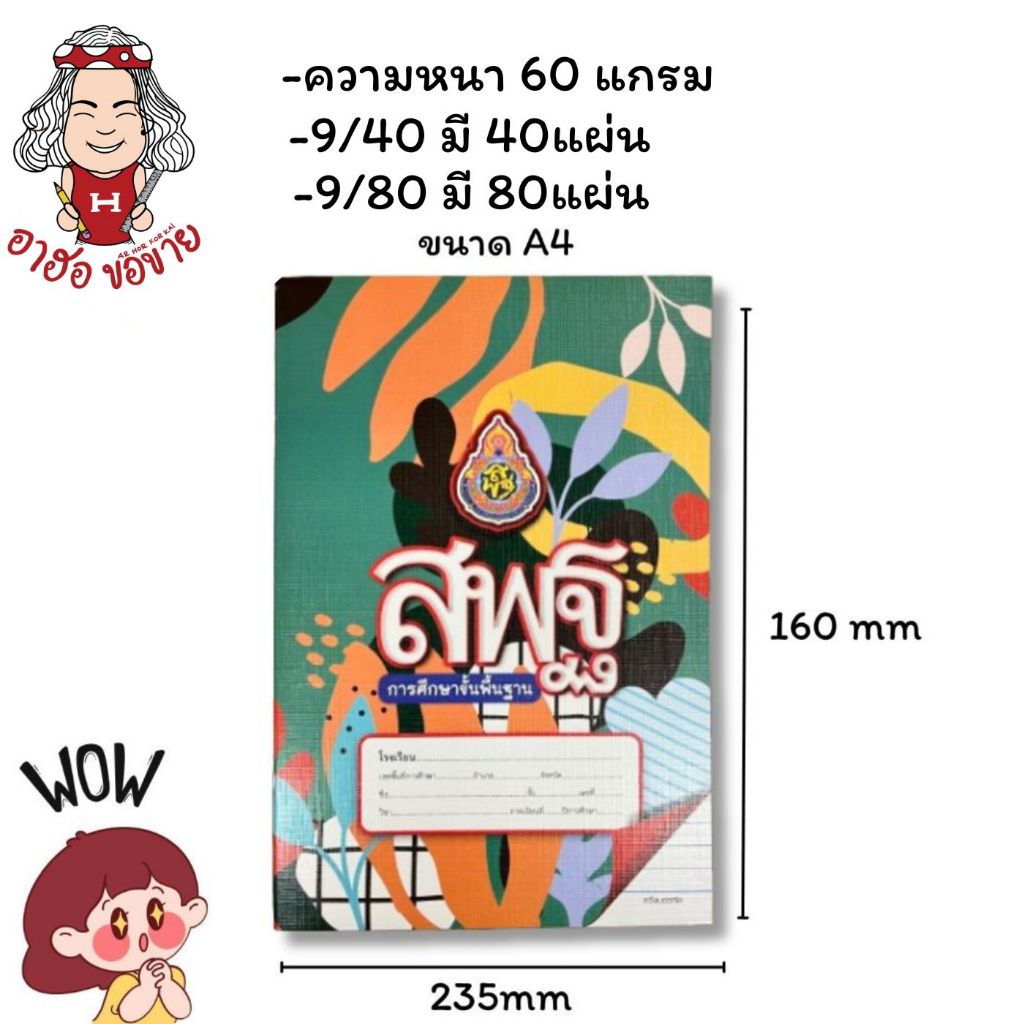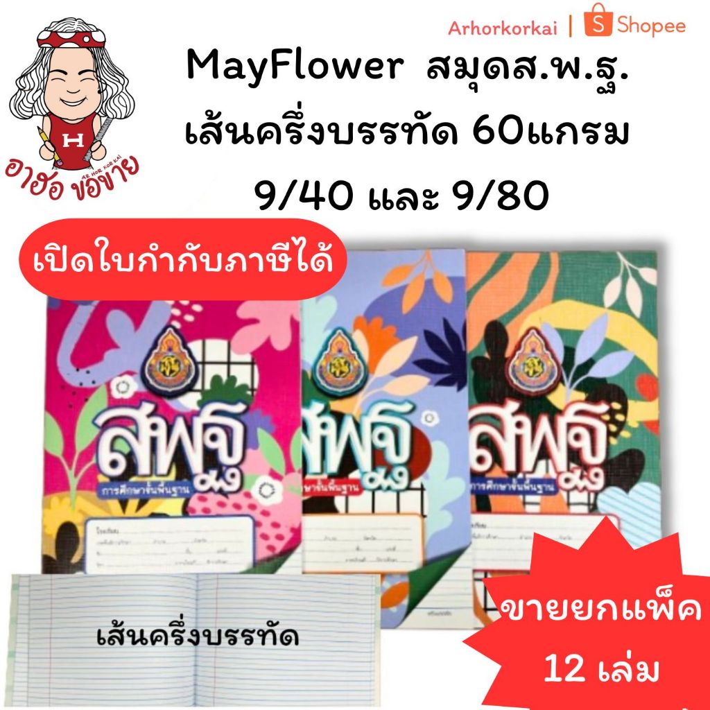 Mayflower สมุด ส.พ.ฐ. 60 แกรม 9/40 , 9/80ครึ่งบรรทัด คละลาย