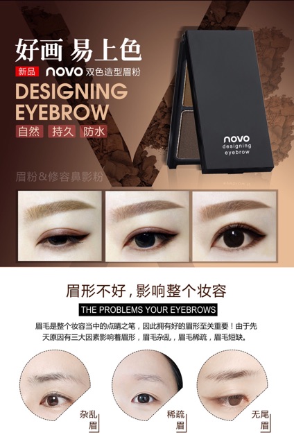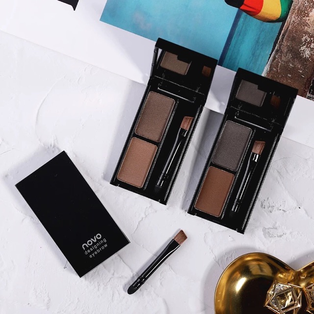 novo 5088 โนโวที่เขียนคิ้วตลับ พร้อมแปรงปัดคิ้ว เขียนคิ้วฝุ่นอัดแข็งตลับ เขียนง่าย กันน้ำ สไตล์เกาหลี Eyebrow Powder
