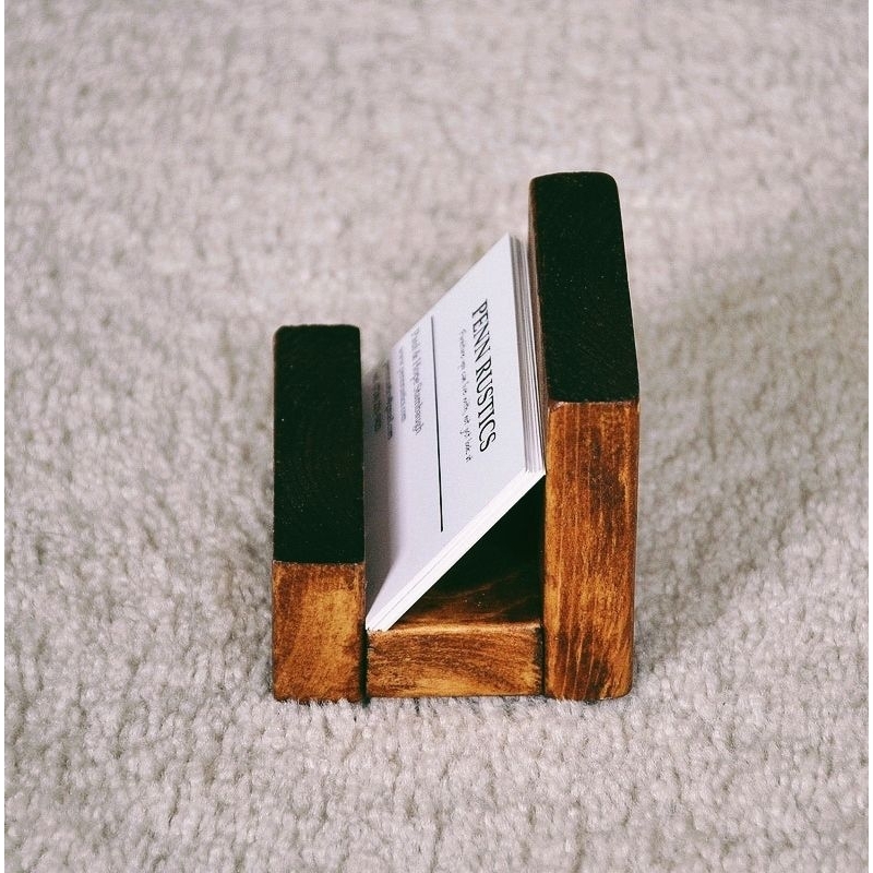 ที่ใส่นามบัตร เป็นงานไม้ ทำด้วยมือ สำหรับวางนามบัตร บนโต๊ะทำงาน เพื่อที่จะได้สะดวก