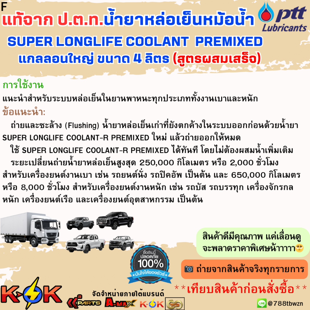 แท้จาก ป.ต.ท.น้ำยาหล่อเย็นหม้อน้ำ แท้.!!ปตท. Super Long Life Coolant (สีชมพู เรืองแสง) แกลลอนใหญ่ขนาด 4 ลิตร (ราคาต่อ 1 แกลลอน) *** คุณสั่ง เราส่งสินค้าตรงปก ราคาถูก***