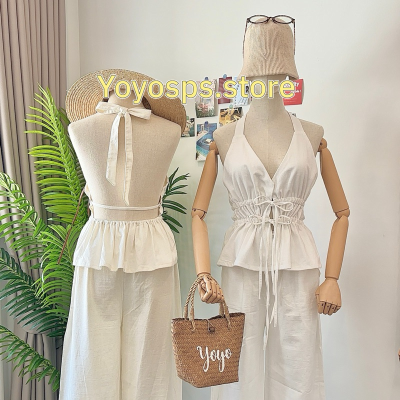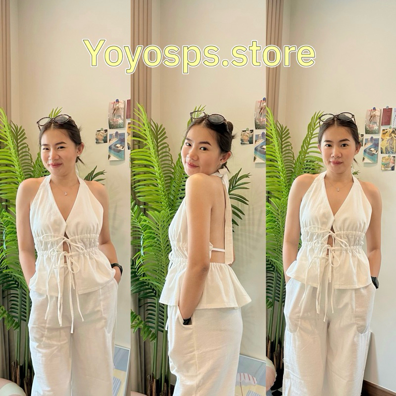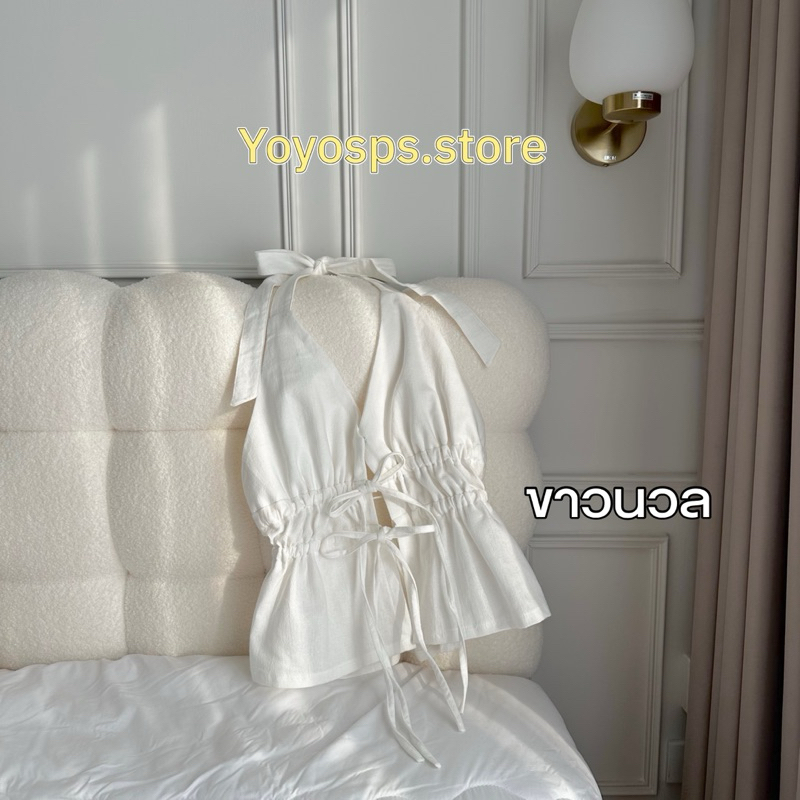 พร้อมส่ง Doubel Bow Top🎀🪞เสื้อผ้าฝ้ายคล้องคอผูกโบว์ โชว์หลัง
