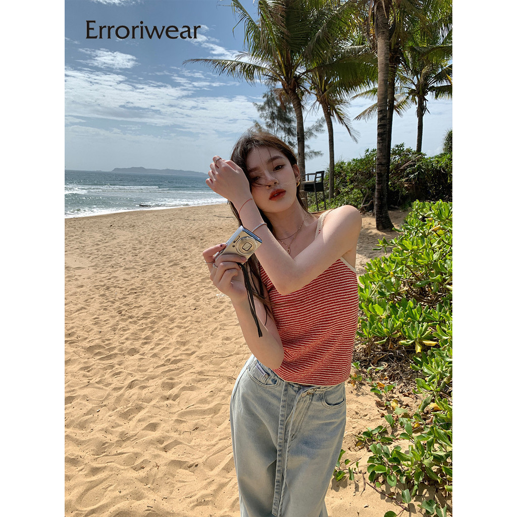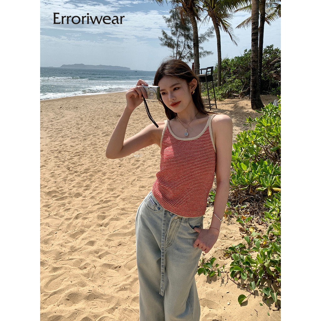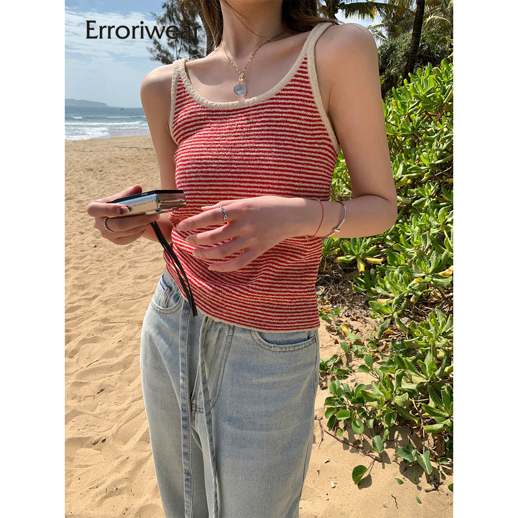 Errokiwear ผู้หญิงเสื้อกล้ามแฟชั่นรอบคอลาย Causal Slim Fit แขนกุด Camisole