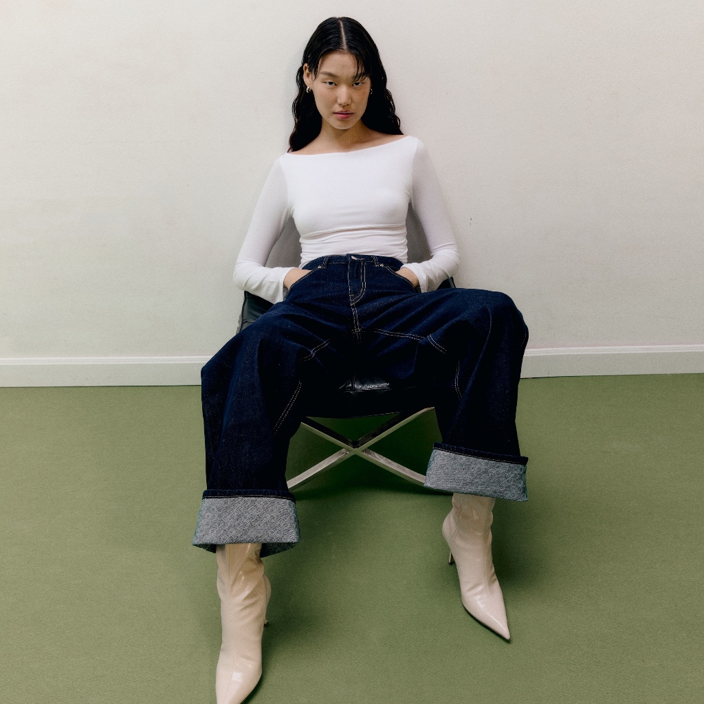 SALISA – BAGGY JEANS PF24 Logo Folded ปล่อยหรือพับชายก็ได้ กางเกงยีนส์