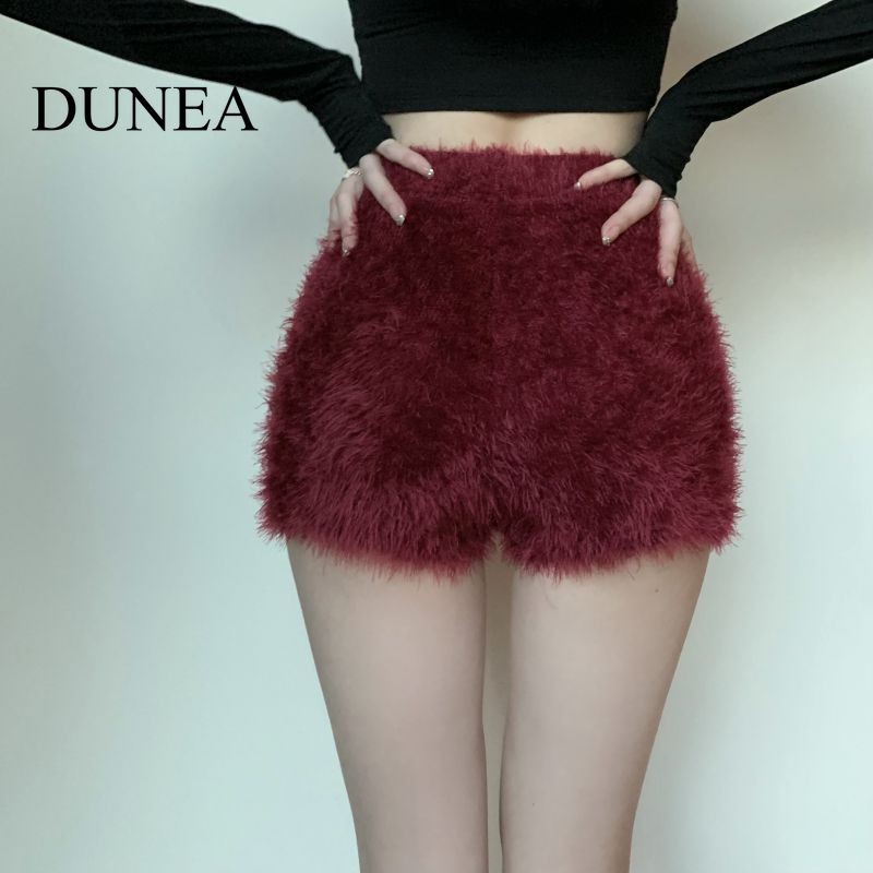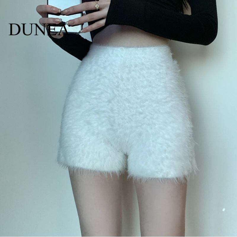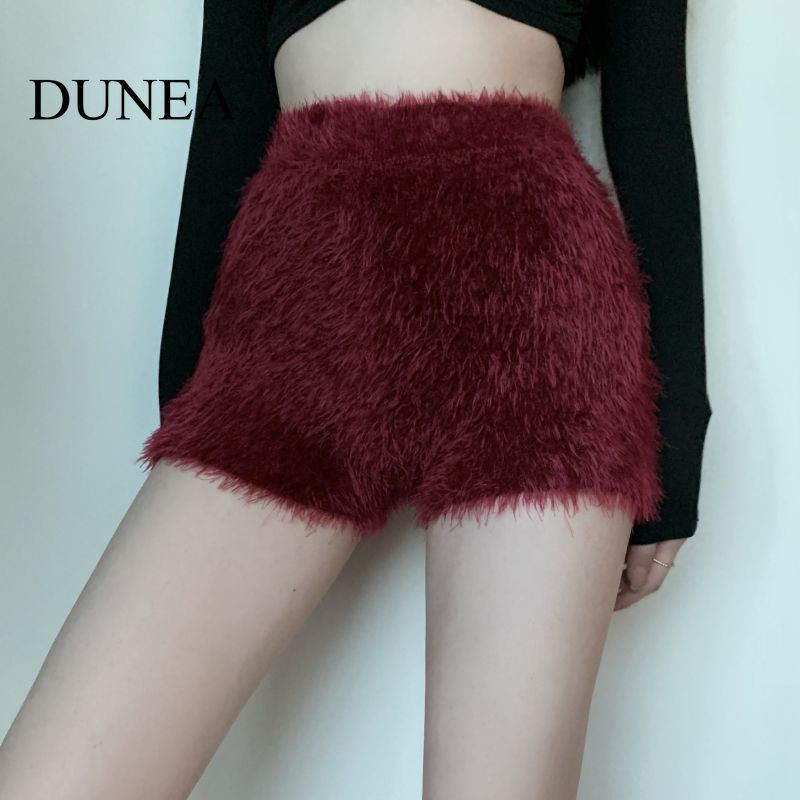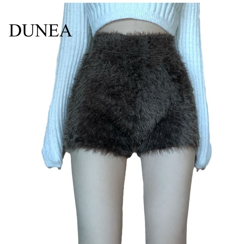 เนินเขา สีทึบเอวสูงถักตุ๊กตากางเกงขาสั้น