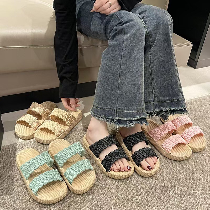 uyongit รองเท้าแตะสวม พื้นนิ่ม แฟชั่น รองเท้าผู้หญิง ใส่สบาย สีพื้น พร้อมส่ง S-201