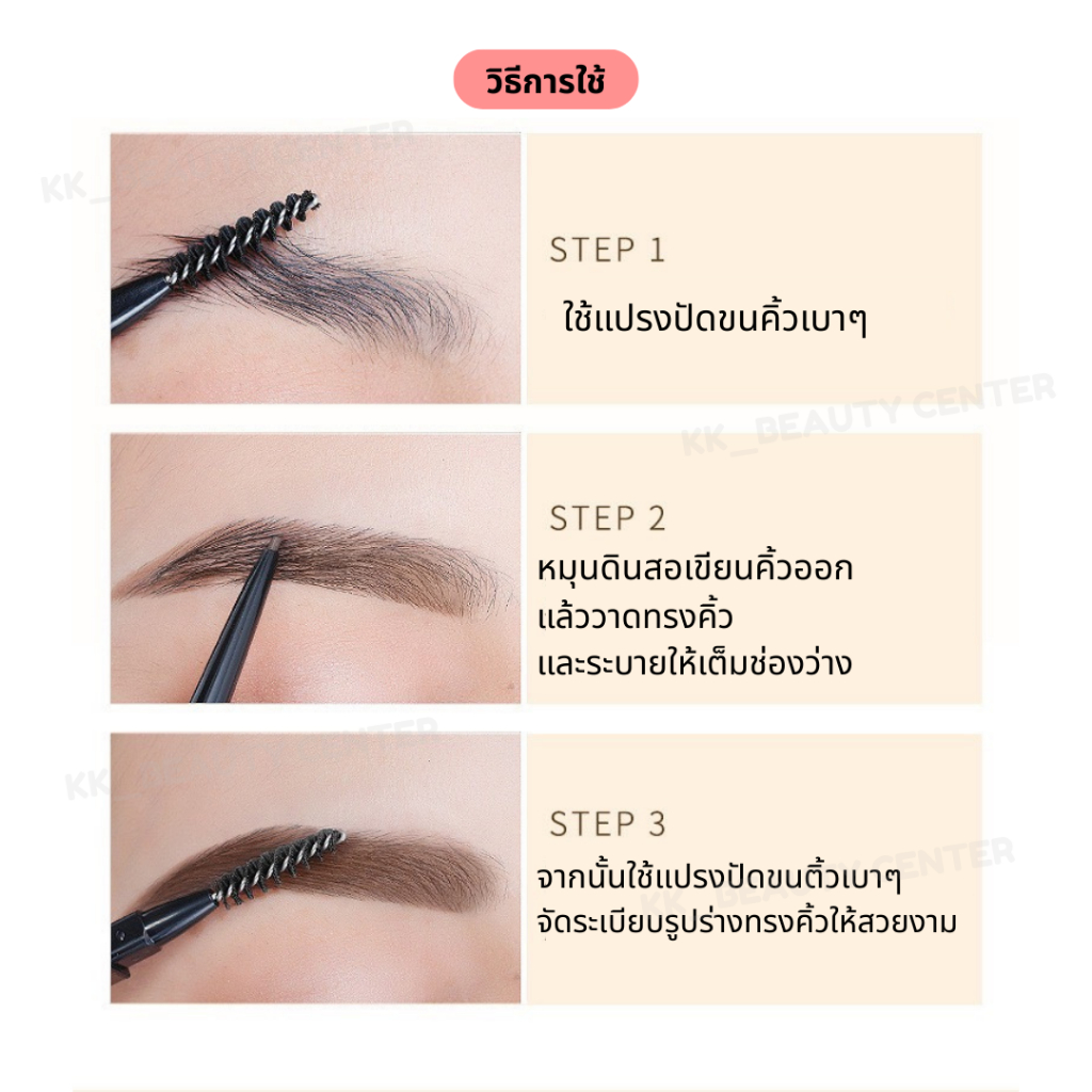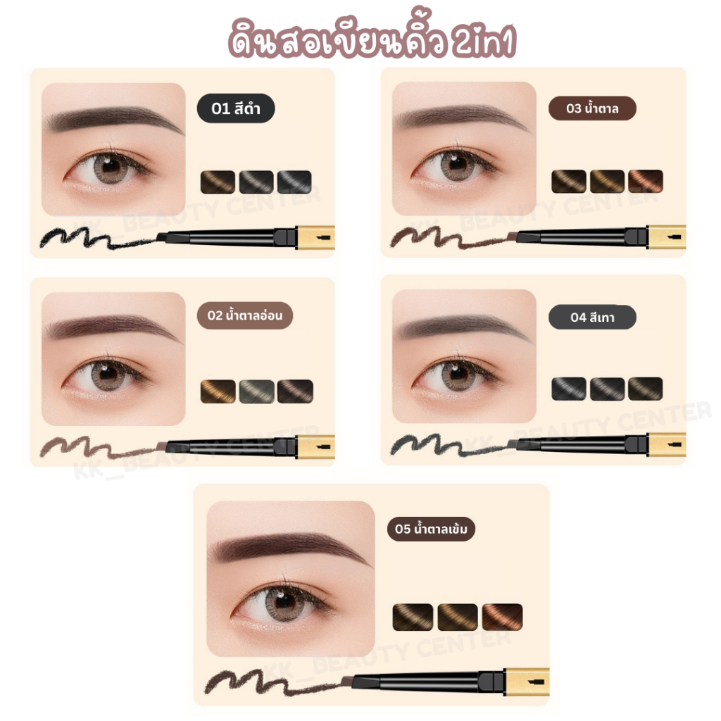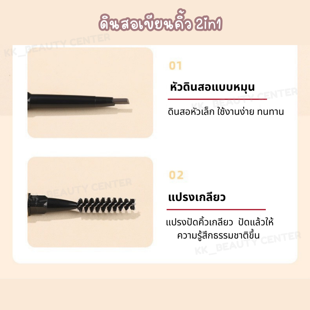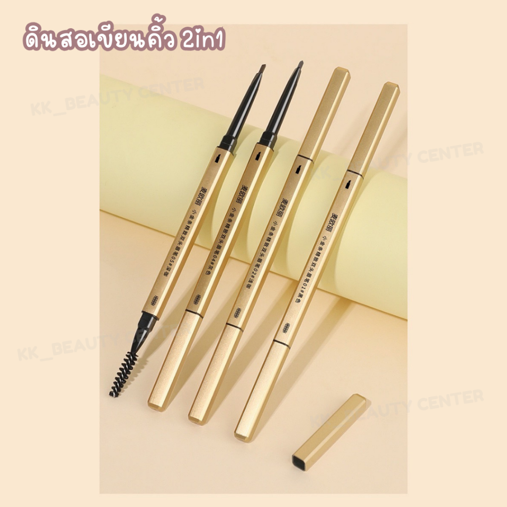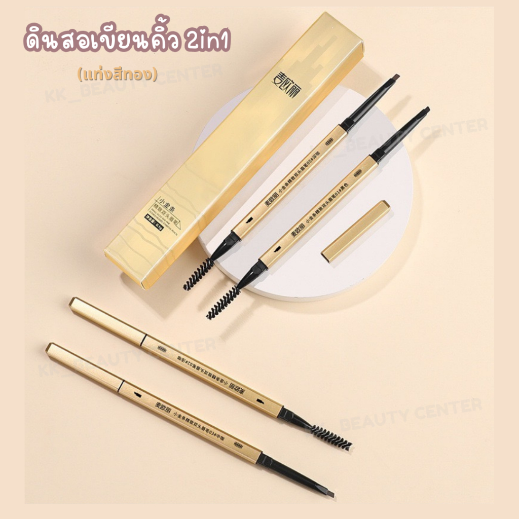 (สินค้าส่งจากไทย) ดินสอเขียนคิ้ว (แท่งสีทอง) 2in1 ที่เขียนคิ้ว พร้อมแปรงปัด กันน้ำ กันเหงื่อ