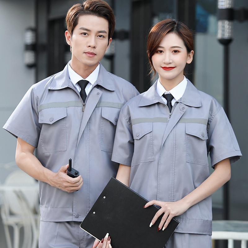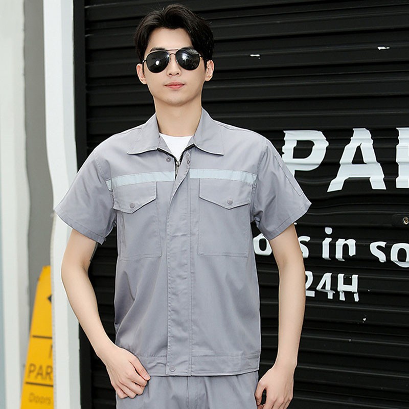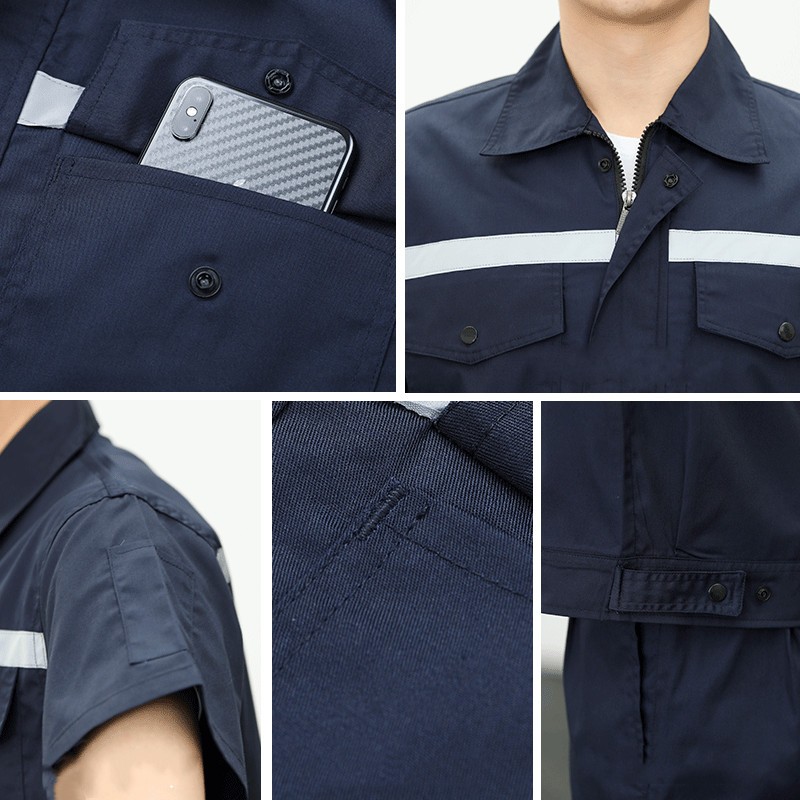 เสื้อผ้าคุ้มครองแรงงานสะท้อนแสงฤดูร้อน สามารถสวมใส่ได้สำหรับผู้ชายและผู้หญิง เสื้อผ้าทำงานซ่อมเครื่องจักรในโรงงาน แขนสั้