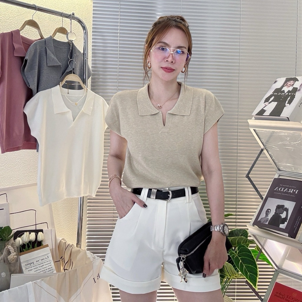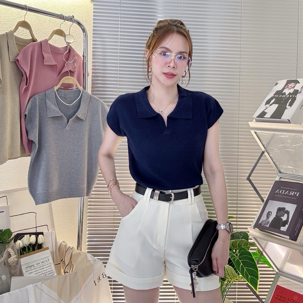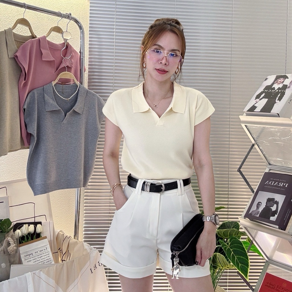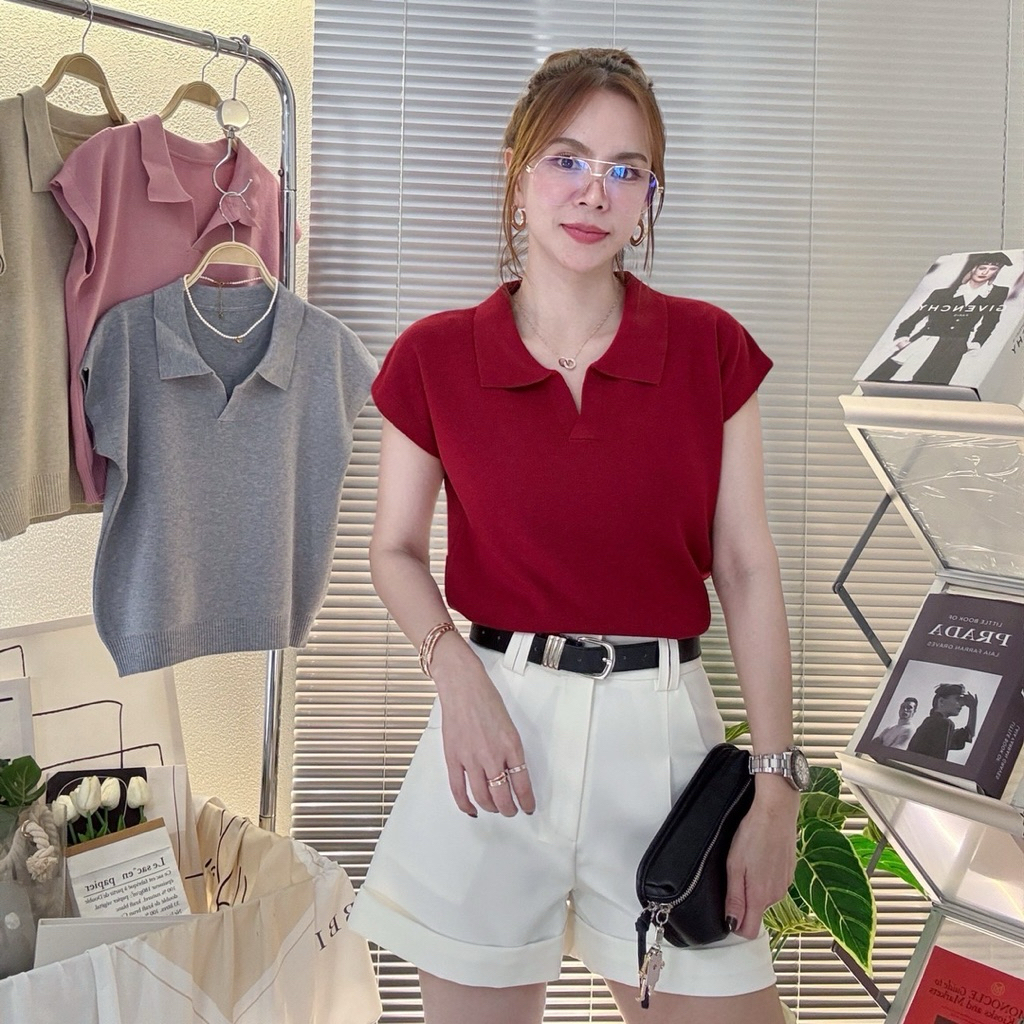 D008. เสื้อไหมพรม คอปกจั้มเอว