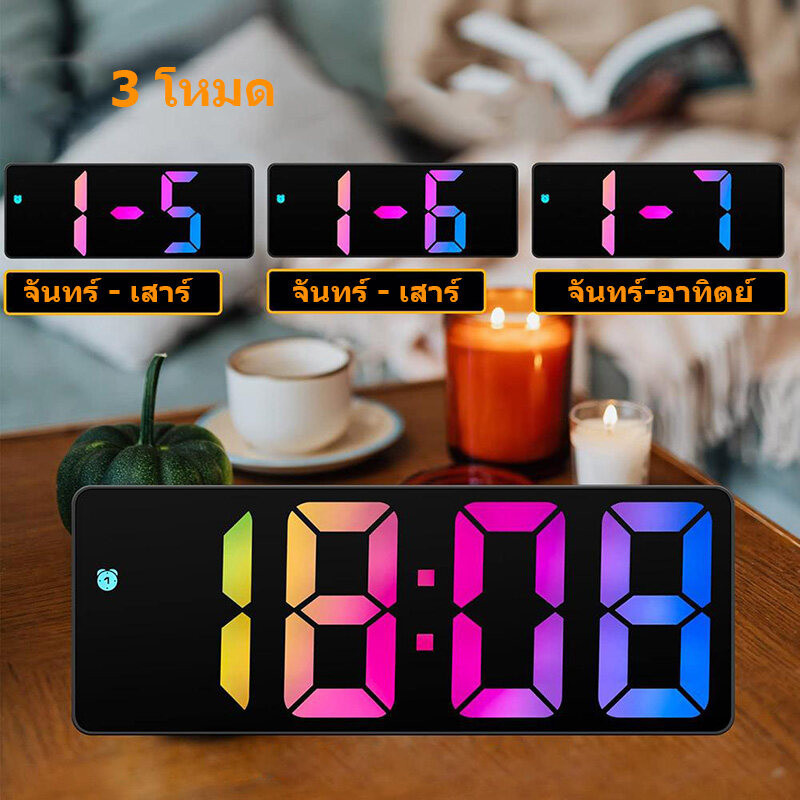 JQTH นาฬิกาดิจิตอล นาฬิกาตั้งโต๊ะ นาฬิกาปลุกดิจิทัล มีไฟแบ็คไลท์ LED บอกอุณหภูมิ และปฏิทิน สีสันสดใส นาฬิกาดิจิตอล