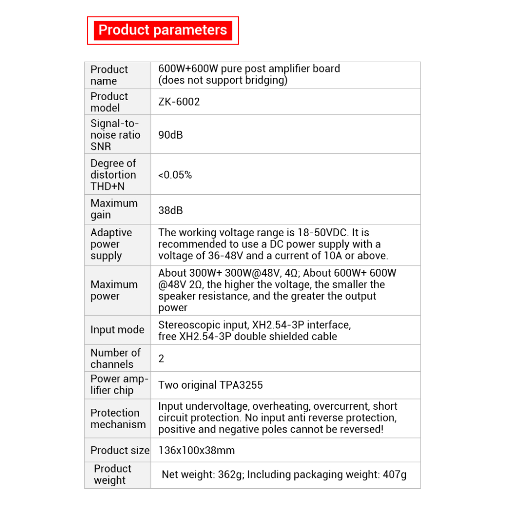 ชื่อผลิตภัณฑ์ : แผงวงจรแอมพลิฟายเออร์กำลังขยายแบบเพียวโพสต์สเตจ 600W+600W (ไม่รองรับการบริดจ์)