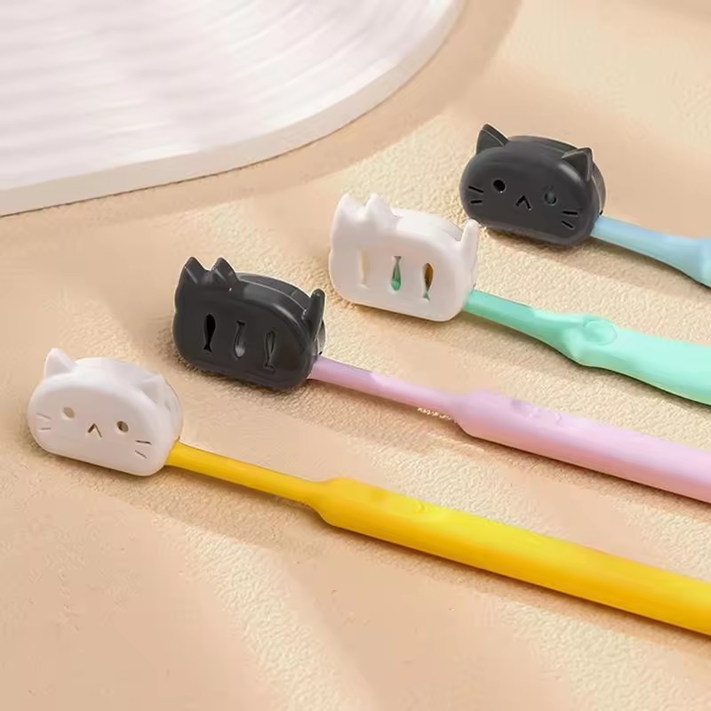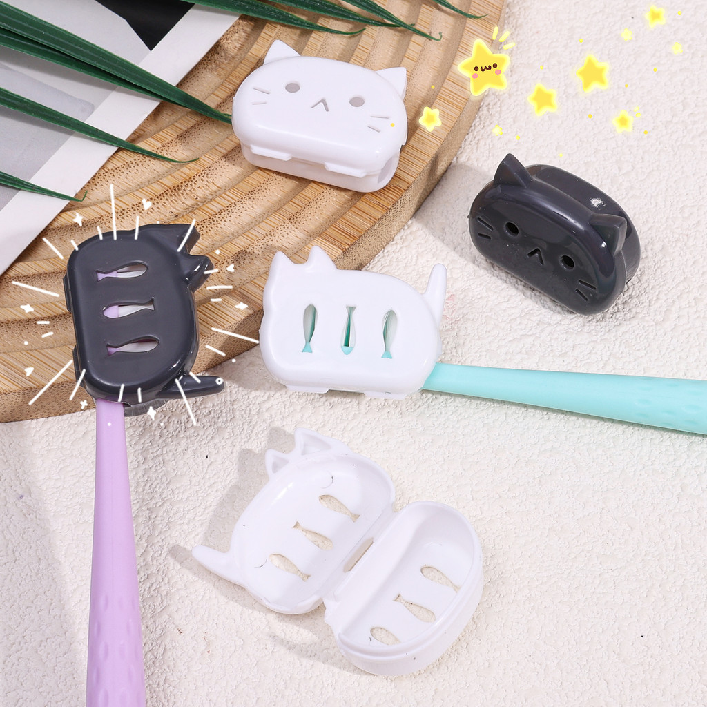 Slxc-คลิปเก็บหัวแปรงสีฟันรูปแมว-4ชิ้นคิตตี้เดินทางแปรงสีฟันครอบคลุม-การ์ตูนรายการหัวกรณี-อเนกประสงค์,แบบพกพา,ป้องกันสกปรก-สําหรับคู่มือ/แปรงสีฟันพลัง
