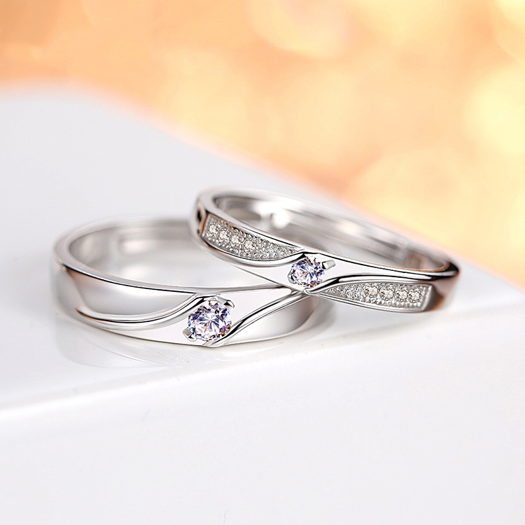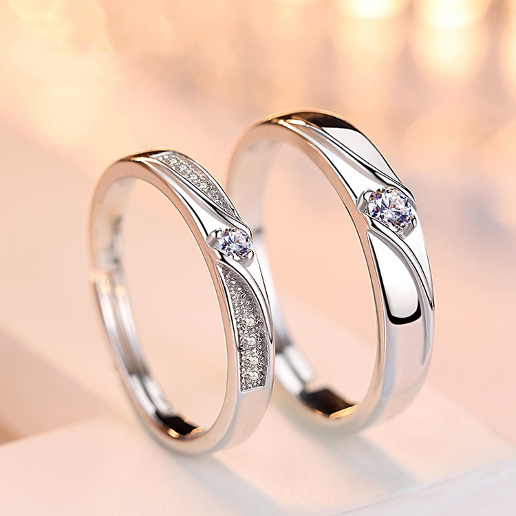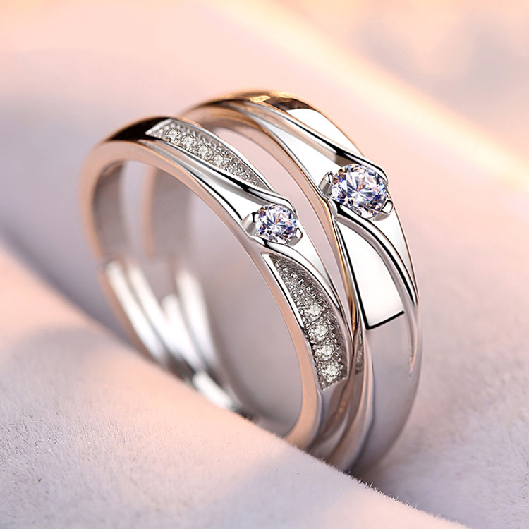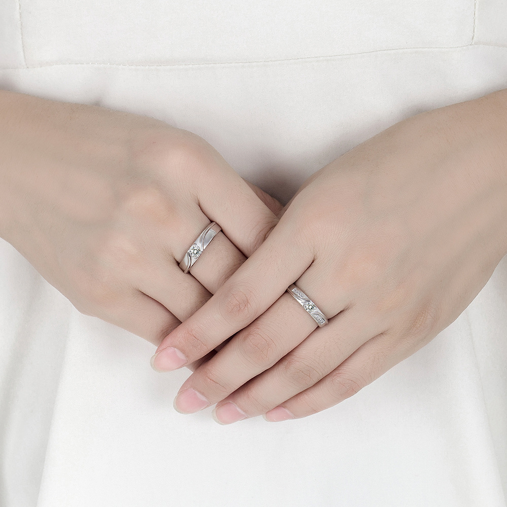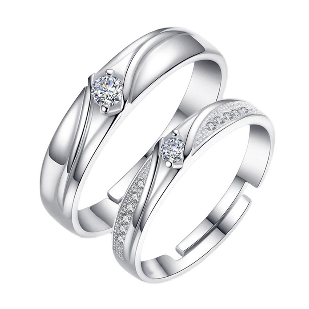 แหวนคู่เพชรสีเงินหรูหรามีสไตล์อุปกรณ์เครื่องประดับงานแต่งงานที่หรูหราสําหรับโรแมนติกเหนือกาลเวลา