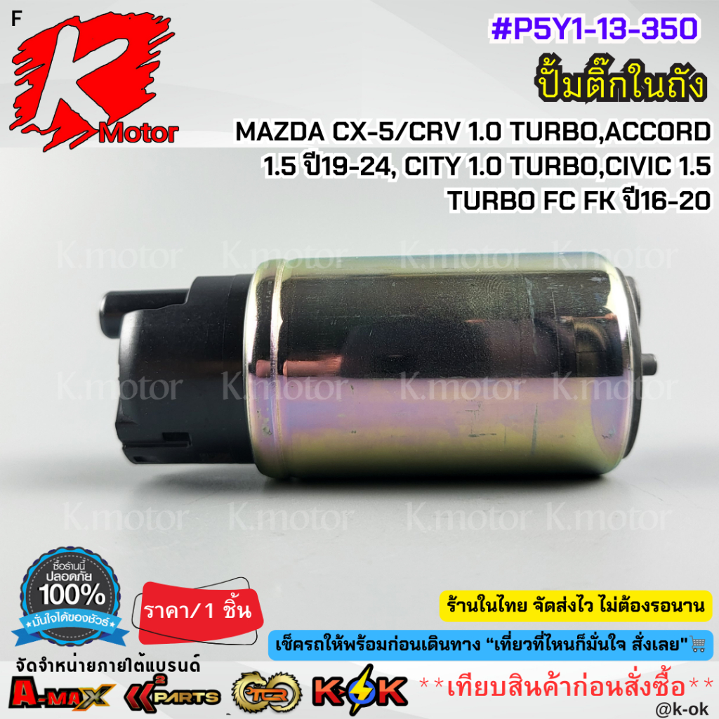 | Model | ปั้มติ๊กในถัง MAZDA CX-5, CRV 1.0 TURBO, ACCORD 1.5 ปี19-24, CITY 1.0 TURBO, CIVIC 1.5 TURBO FC FK ปี16-20 #P5Y1-13-350 |