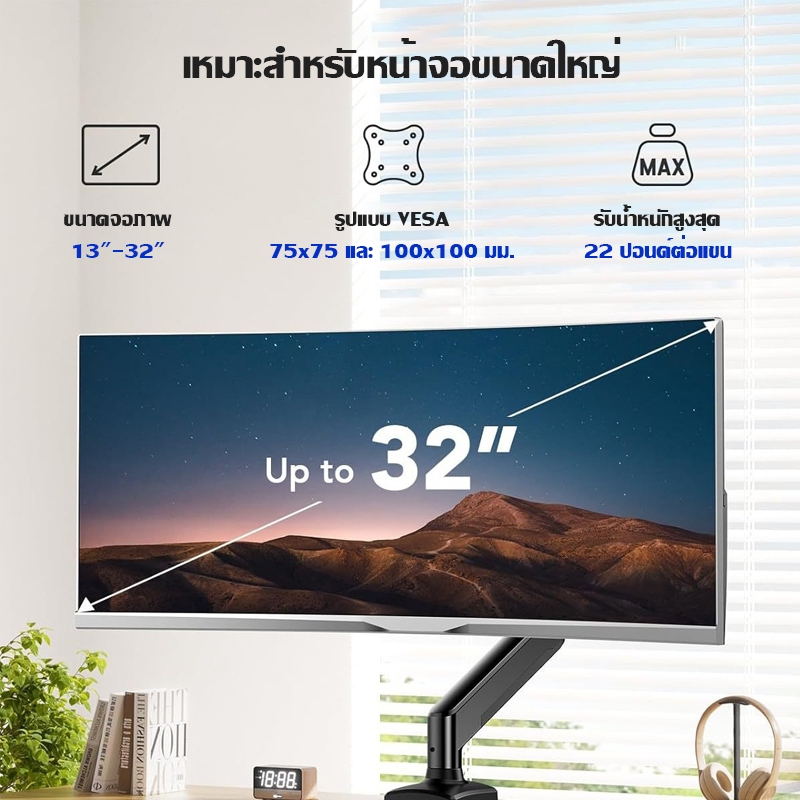 ขาตั้งจอคอม 17-32นิ้ว ขาตั้งจอ 2-15kg ขาตั้งจอมอนิเตอร์ ไม่ต้องเจาะรู ขาตั้งจอคอมพิวเตอร์ 360° VESA monitor stand