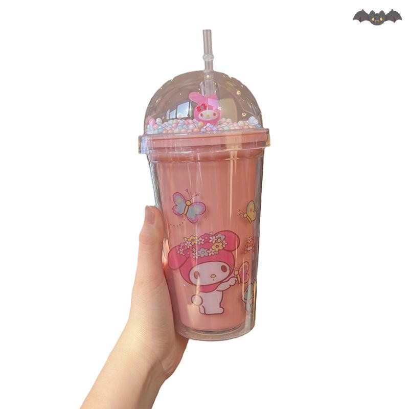 [PE] แบบพกพาอะนิเมะ Sanrio ขวดน้ํา Hello Kitty Melody Kuromi Cinnamoroll Pochacco ถ้วยพลาสติกสองชั้นแก้วกีฬาสาวของขวัญ TH
