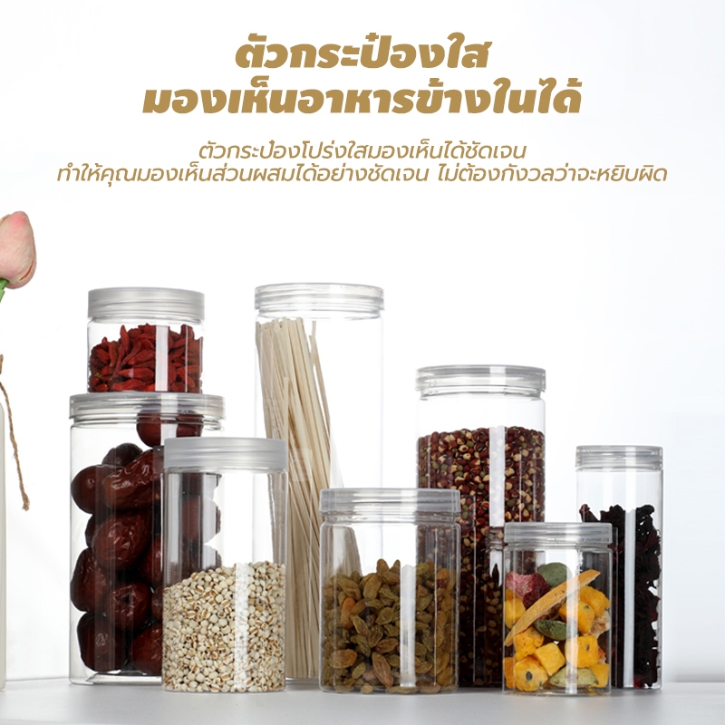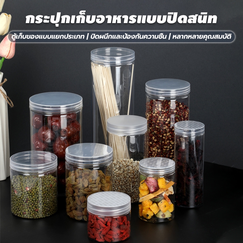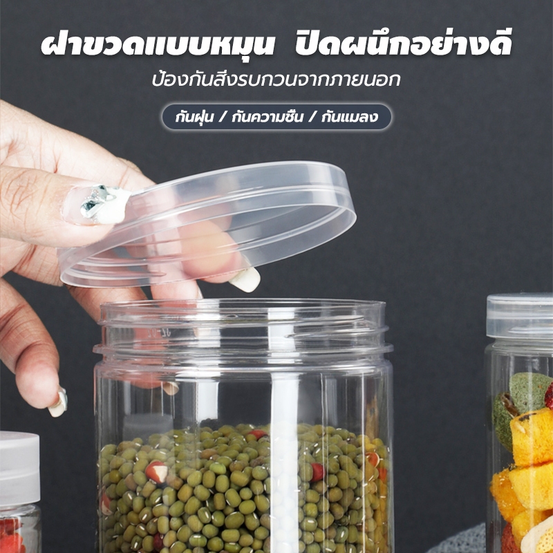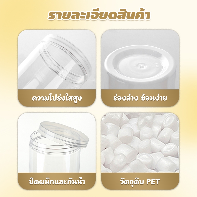 [ขายยกลัง 50 ใบ] กระปุกพลาสติกใส PET กลม พร้ฝาซีลหมุน กระปุกใส อมแผ่นโฟมกันอากาศ มีหลายขนาด ใส่คุกกี้ ลูกอม ขนม
