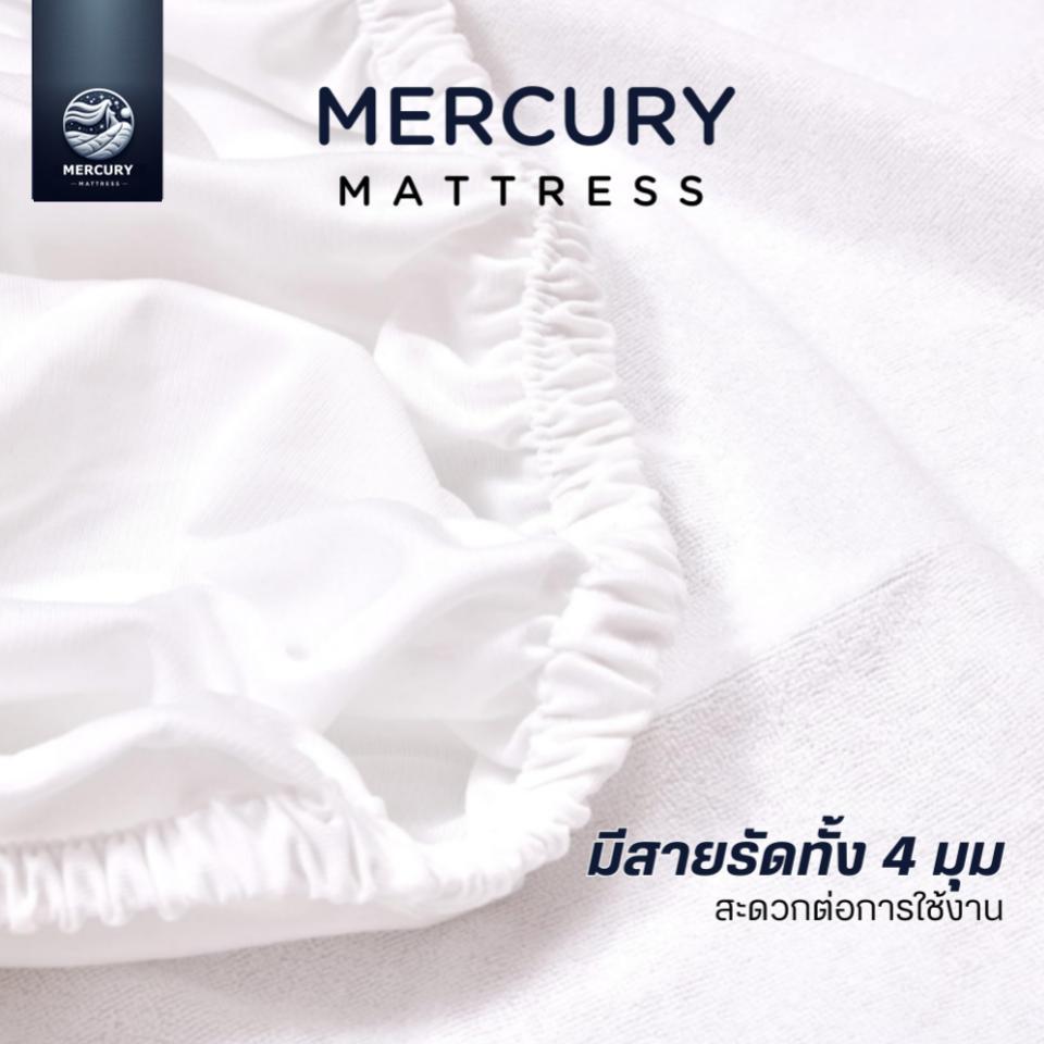 Mercury Mattress ชุดผ้าปูที่นอนกันน้ำ เนื้อผ้าหนาเนียนละเอียด สบายผิว ระบายอากาศได้ดี ผิวสัมผัสนุ่ม ป้องกันไรฝุ่น สะดวกต่อการใช้งาน ผ้าเนียนไม่กระด้าง กันน้ำได้ 100% เช็ดทำความสะอาดง่าย กันฝุ่นเเละสิ่งสกปรก