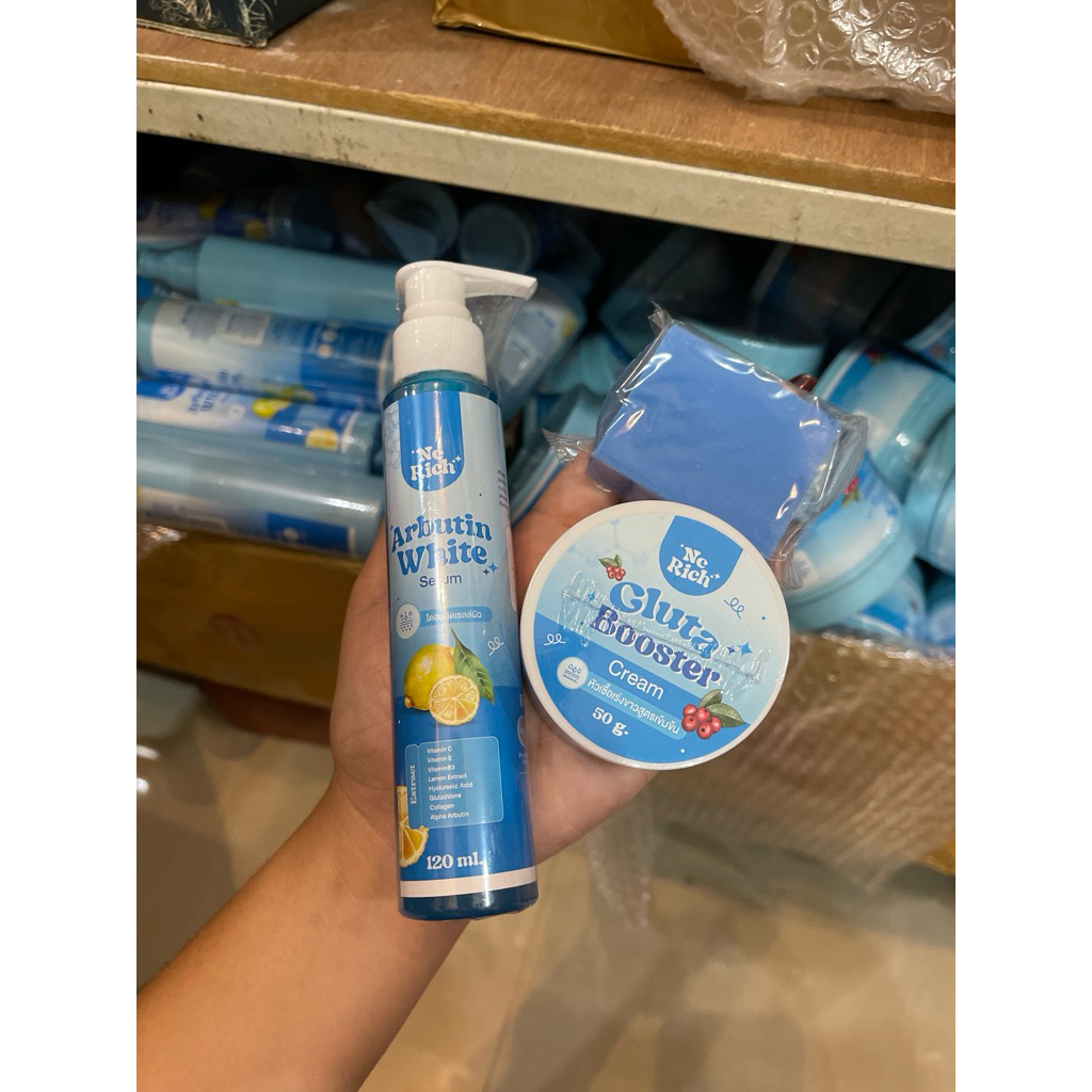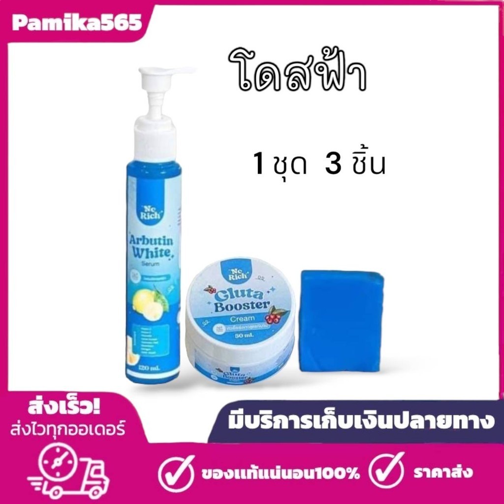 โดสฟ้า Arbutin White อาร์บูติน ไวท์ 1 เซ็ต 3 ชิ้น เซรั่ม ครีม และ สบู่ ผิว