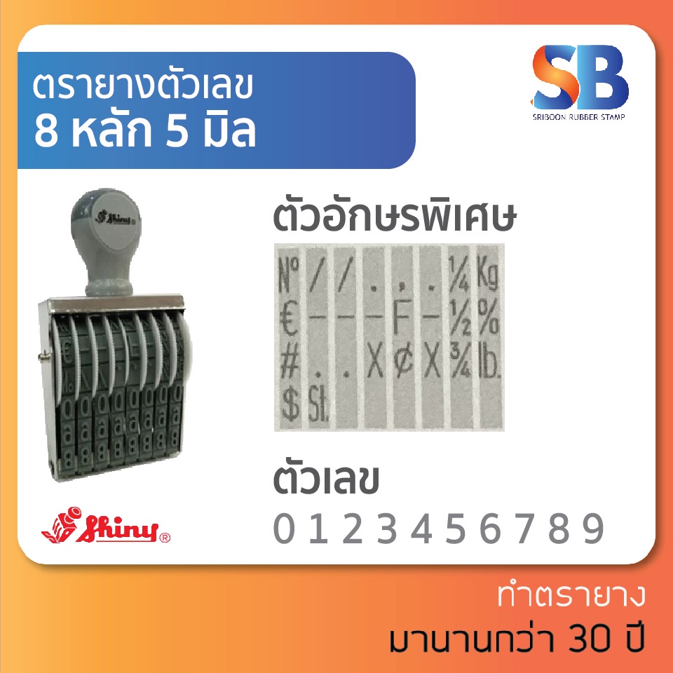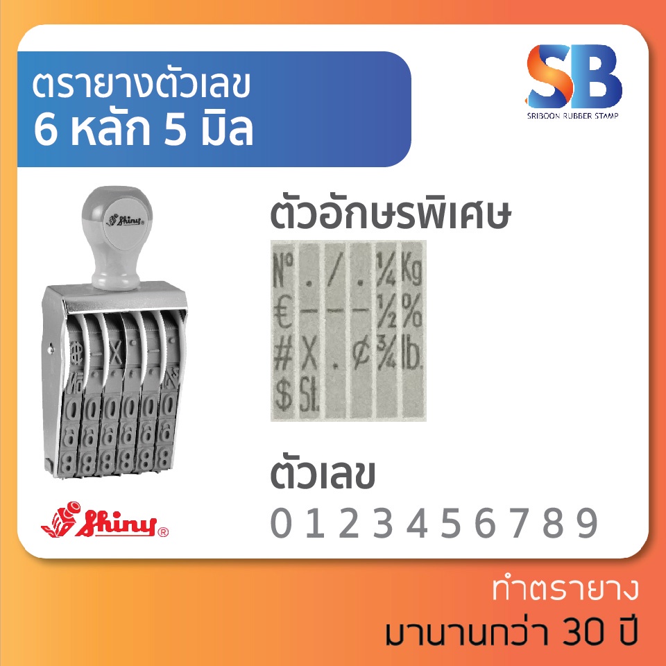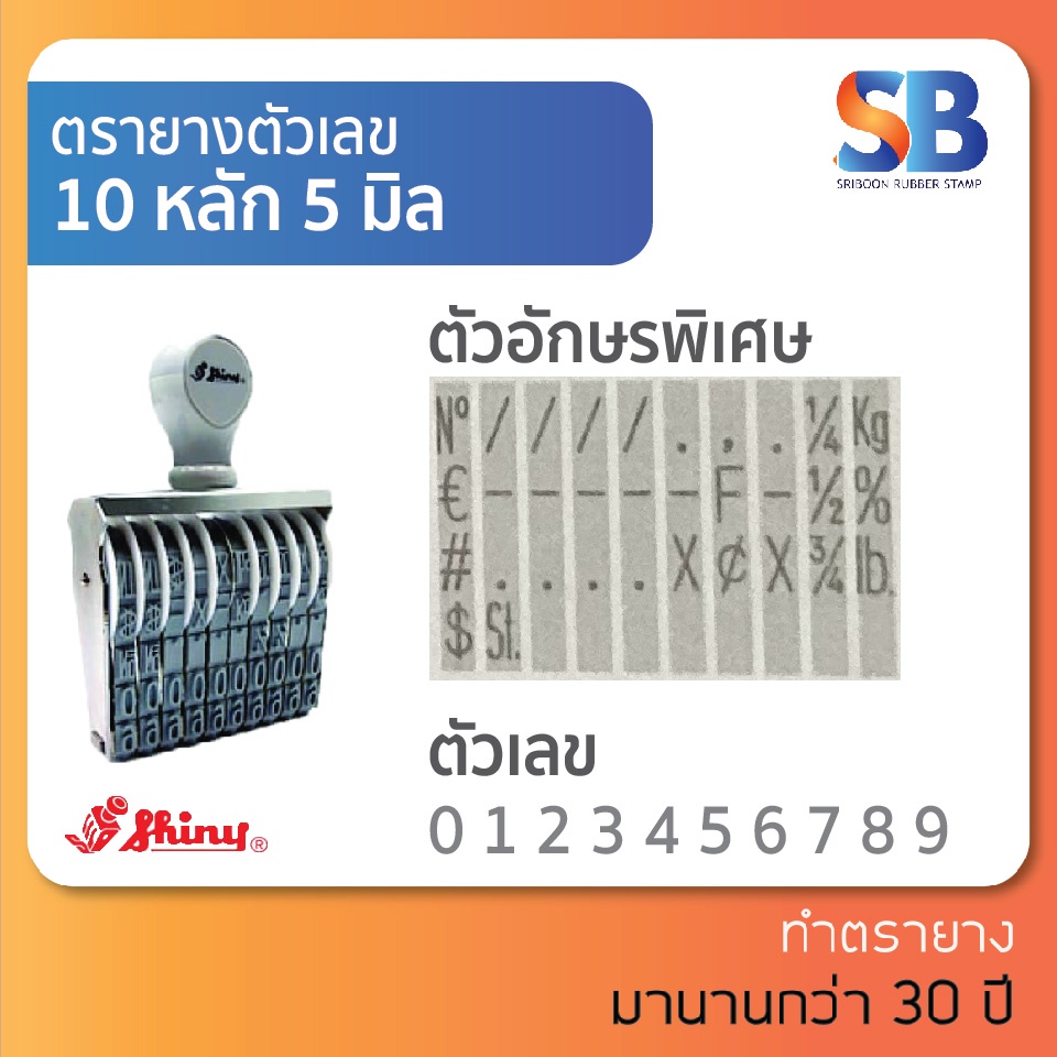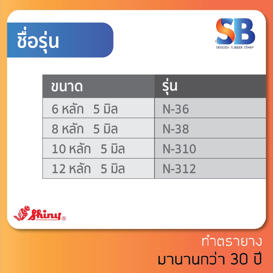 Shiny ตรายางตัวเลข สูง 5 mm (แบบ 6, 8, 10, 12 หลัก), N-36, N-38, N-310, N-312 ออกใบกำกับภาษีได้!