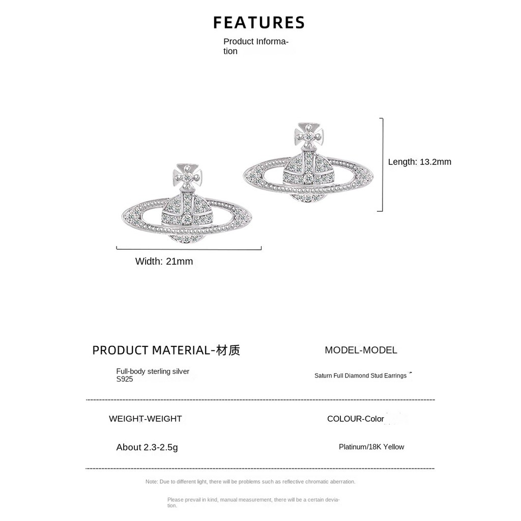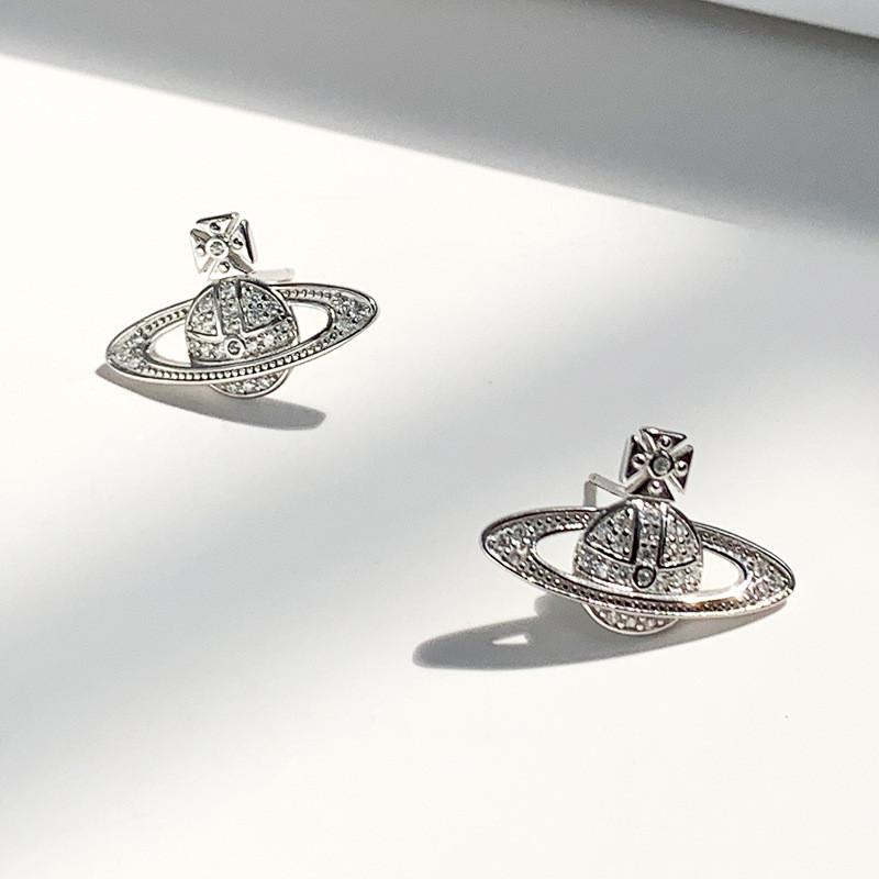 Vivienne Westwood เงินสเตอร์ลิงดาวเสาร์องค์ประกอบเต็มเพชรต่างหูแฟชั่น S925
