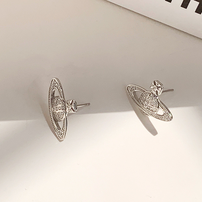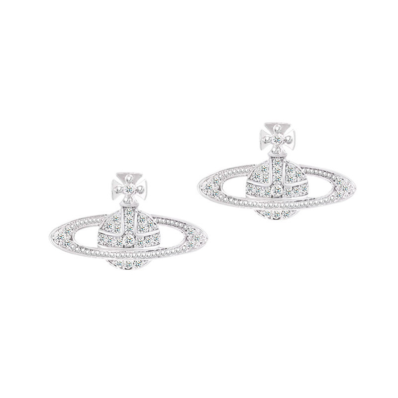 หยิบใส่ตะกร้าVivienne Westwood เงินสเตอร์ลิงดาวเสาร์องค์ประกอบเต็มเพชรต่างหูแฟชั่น S925