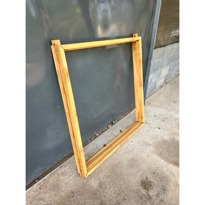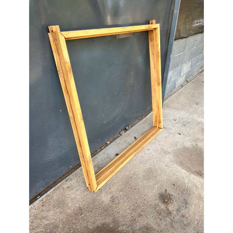 หน้าต่างบานคู่ 50×100 cm 2 บาน+ วงกบ 100×100 cm ทำจากไม้สักแท้ หน้าต่างบานทึบ หน้าต่างสายฝน