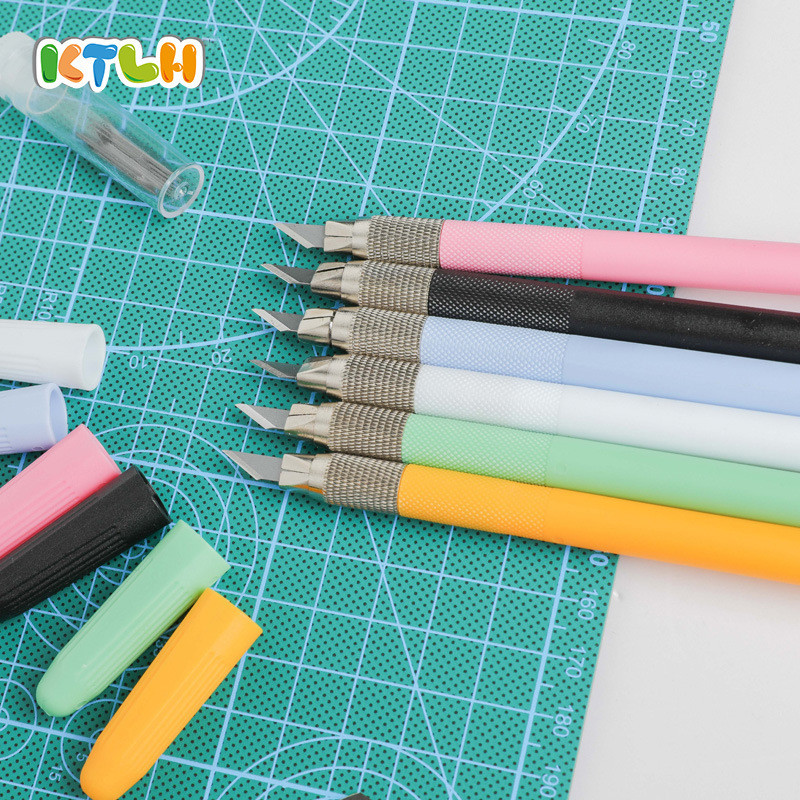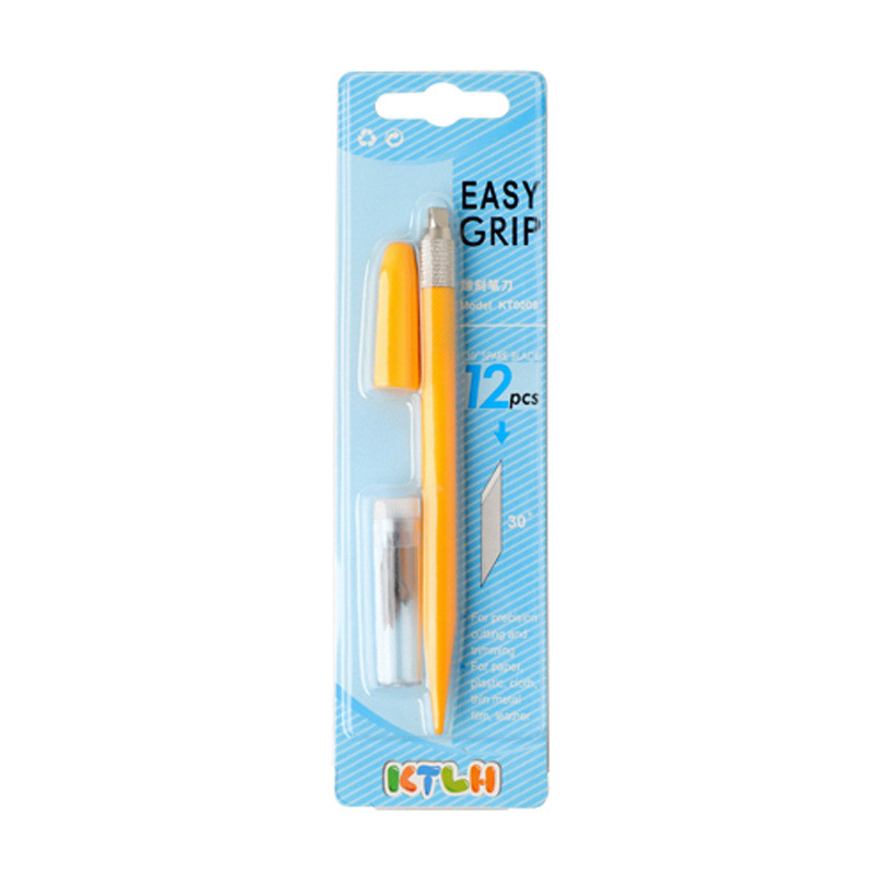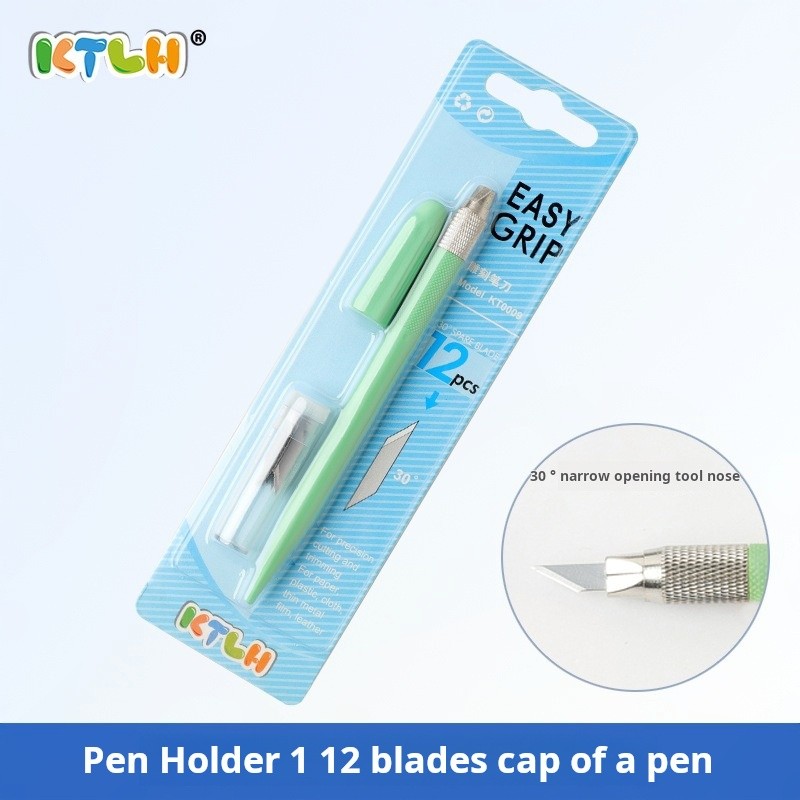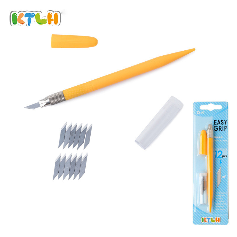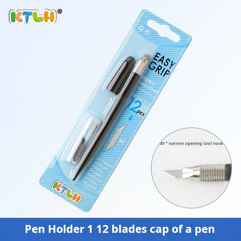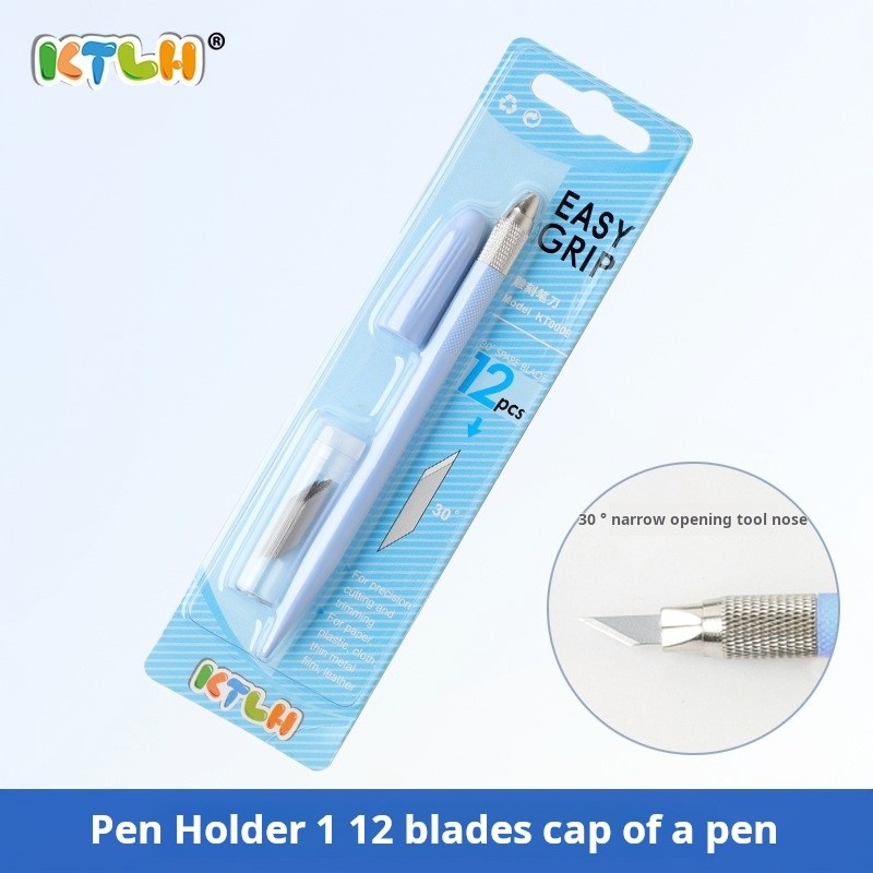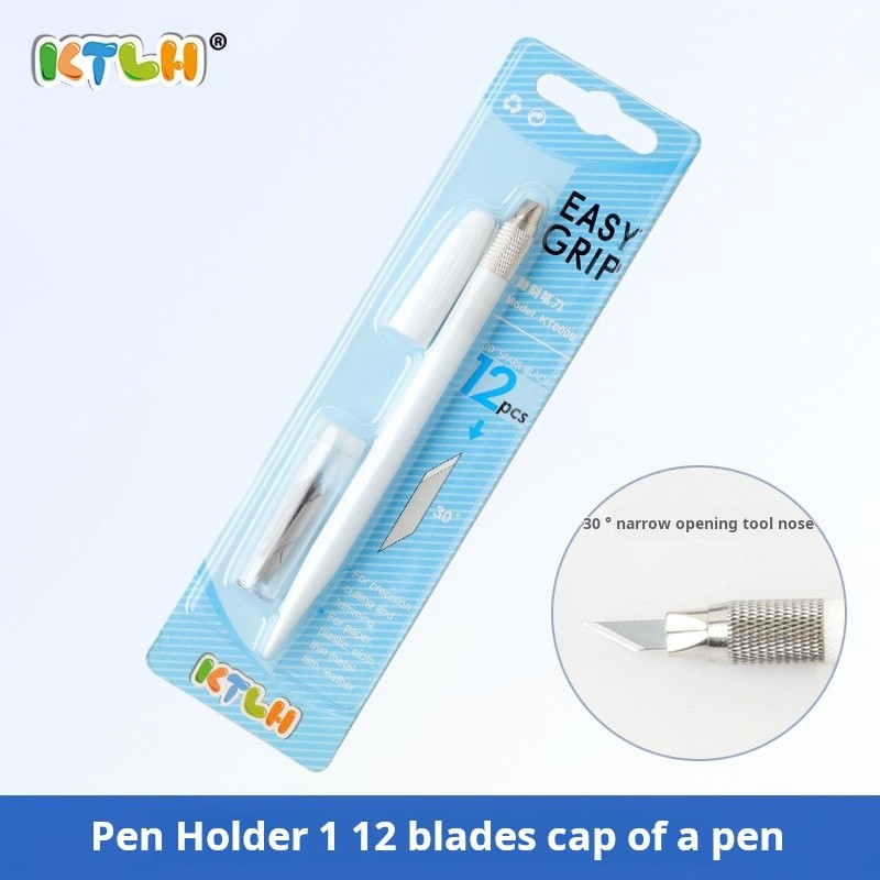 มีดปากกาโมเดล เครื่องมือ DIY มีดแกะสลักกันดั้มเครื่องตัดกระดาษด้วยตนเอง Easy Grip ตรายางไม้แกะสลักกระดาษสมุดภาพปากแคบ Penknife พร้อมใบมีด 12 ใบ