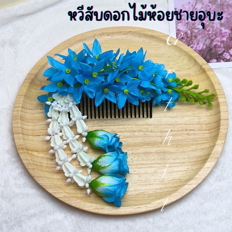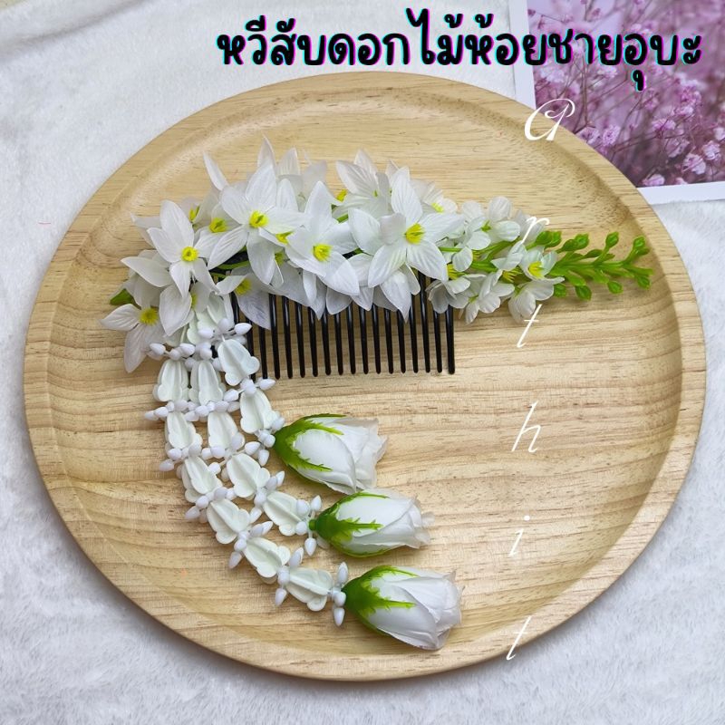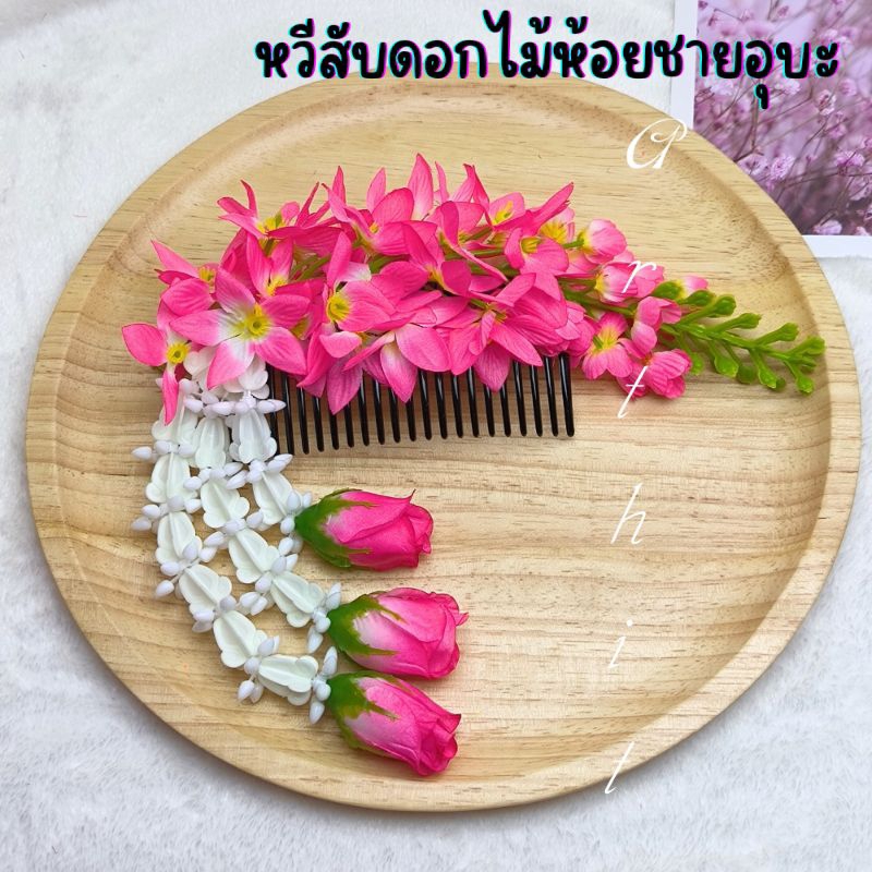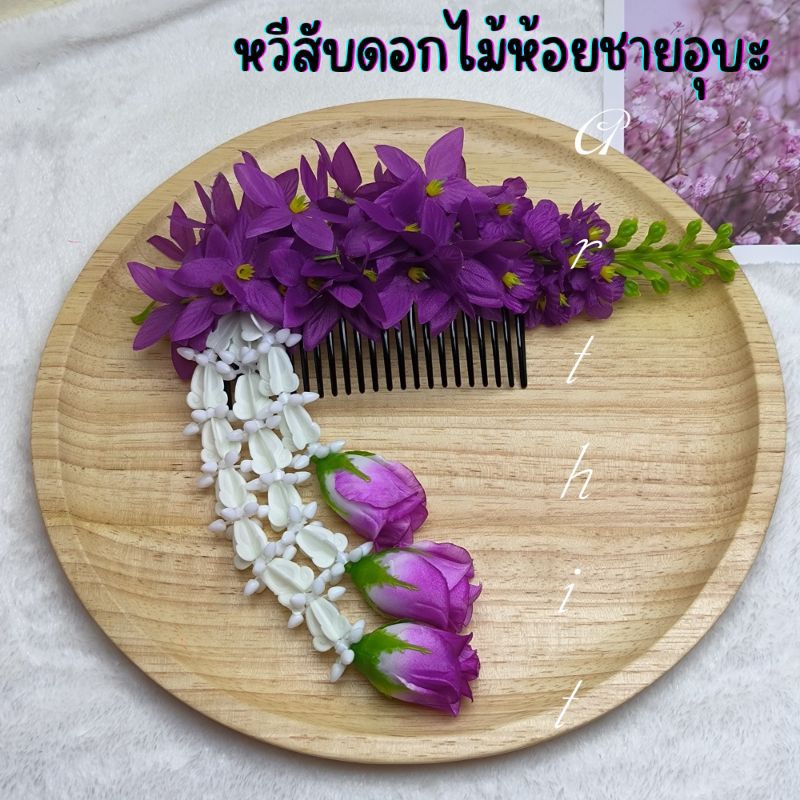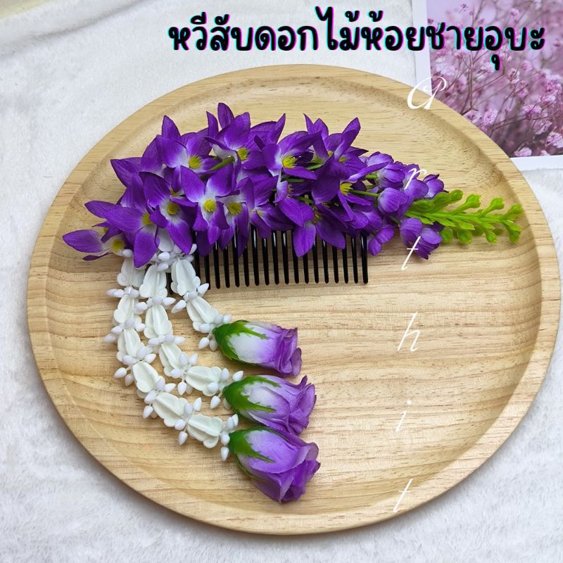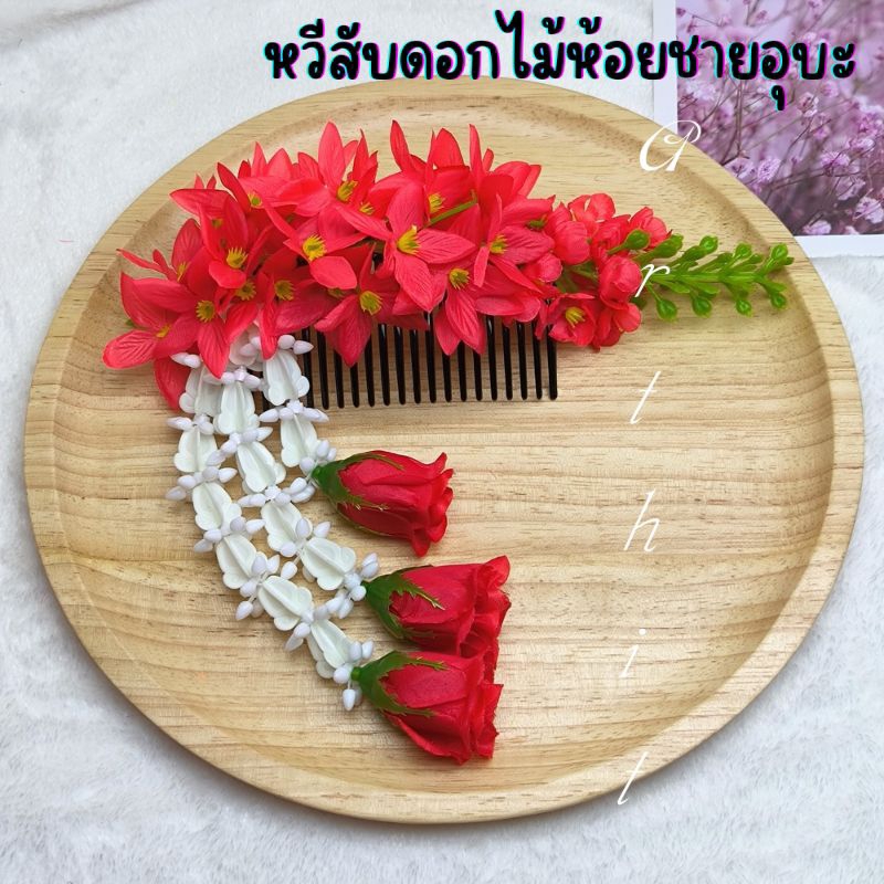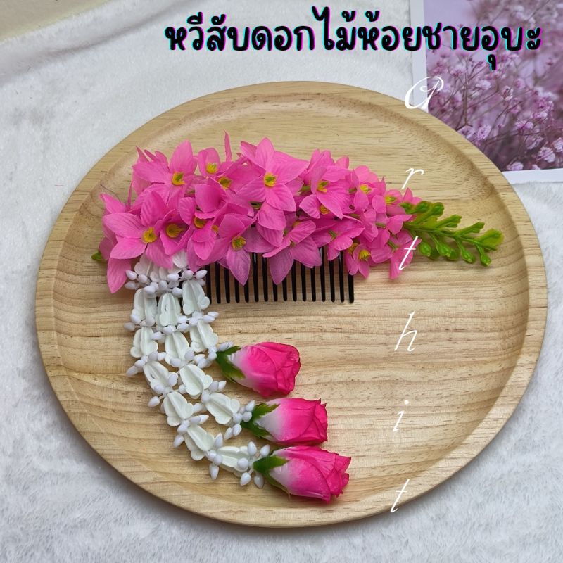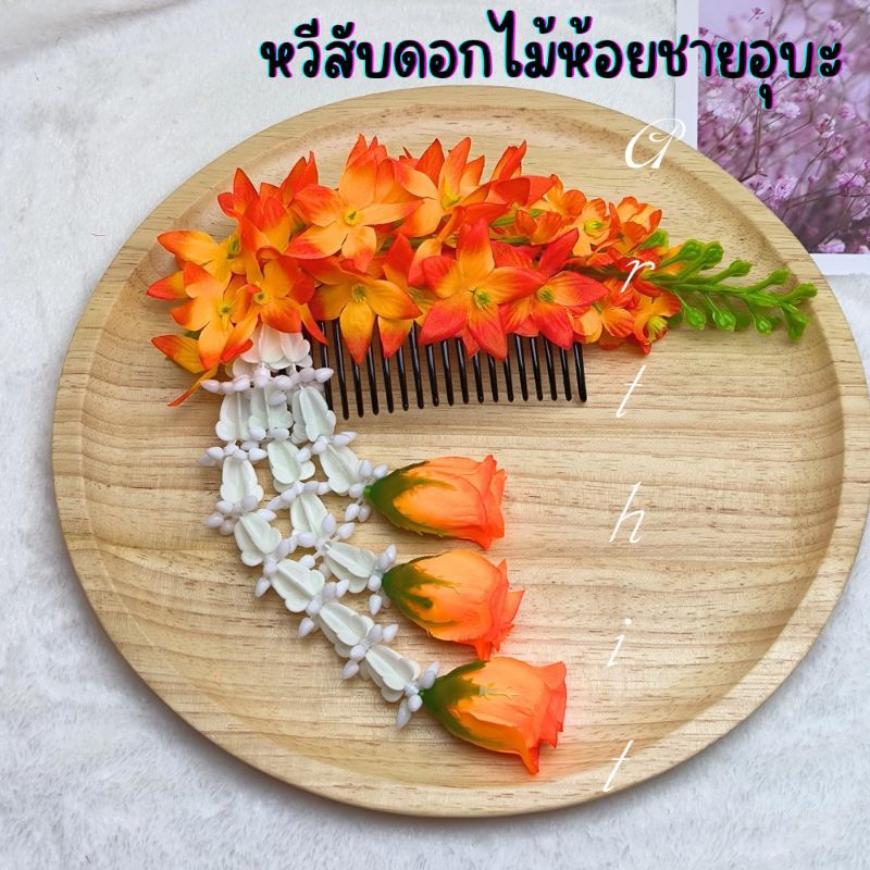 หยิบใส่ตะกร้าหวีสับดอกคูณ หวีเสียบผม หวีดอกไม้ พร้อมห้อยชายอุบะ สวยงาม