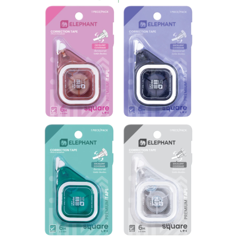 Elephant เทปลบคำผิด 6m รุ่น สแควร์ (คละสี)