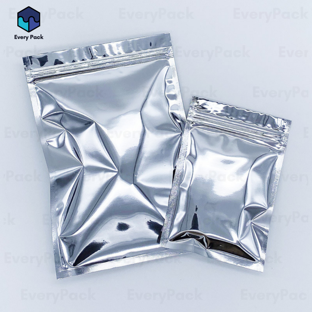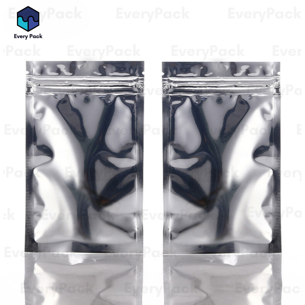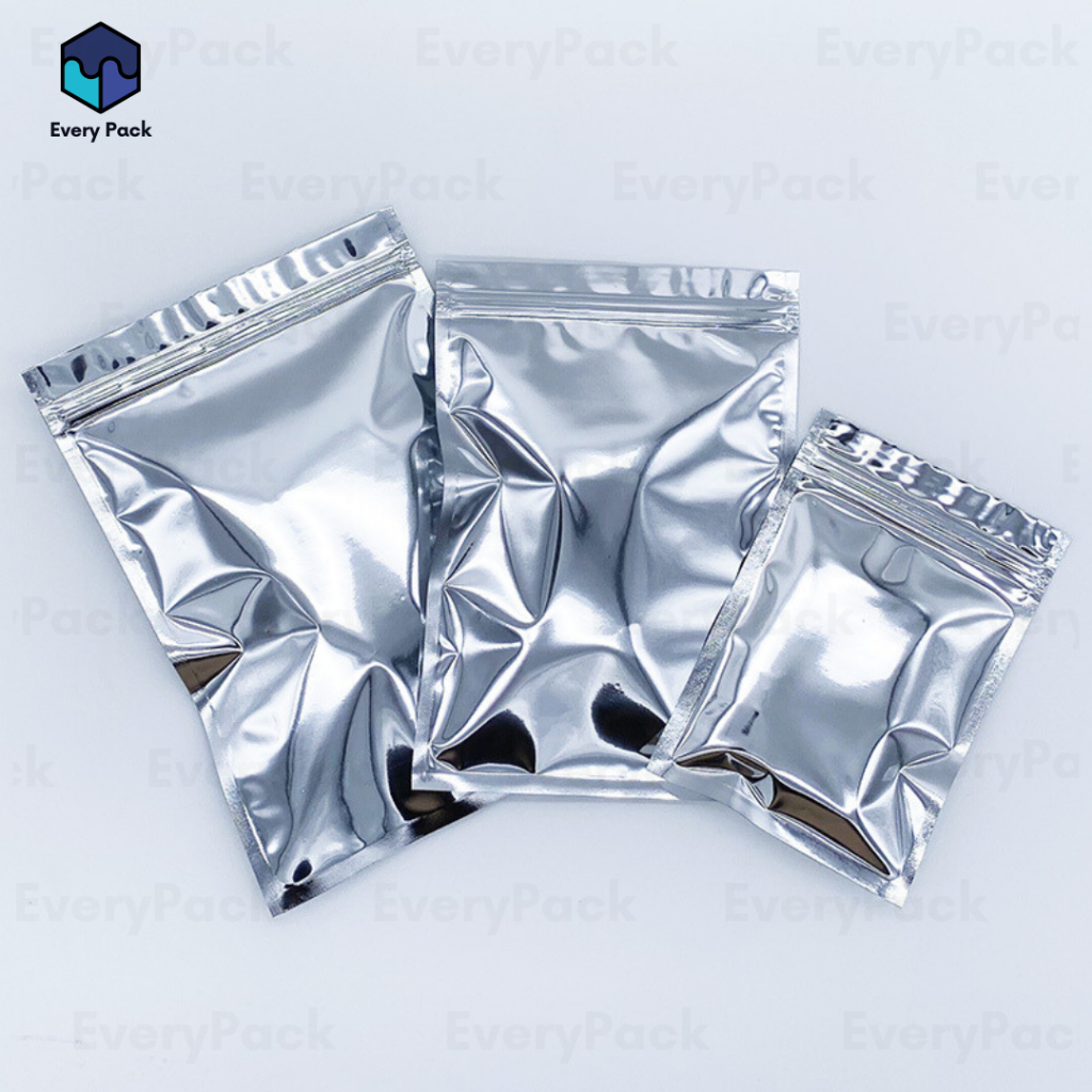 [แพ็ค 50 ใบ] ถุงซิป ถุงซิปสีทึบ ถุงซิปสีเงินเนื้อเงา หน้า-หลังทึบ ซอง อลูมิเนียมฟอยล์ [PB28]