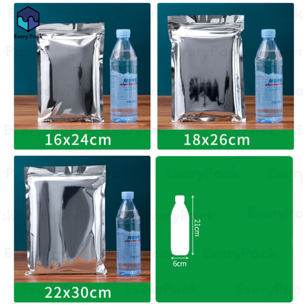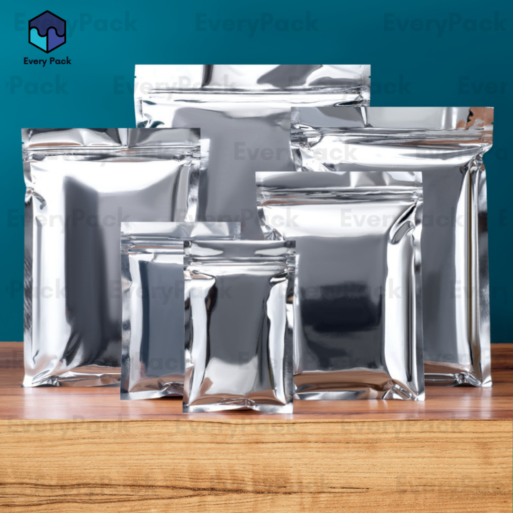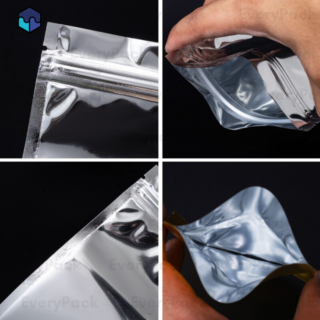 [แพ็ค 50 ใบ] ถุงซิป ถุงซิปสีทึบ ถุงซิปสีเงินเนื้อเงา หน้า-หลังทึบ ซอง อลูมิเนียมฟอยล์ [PB28]